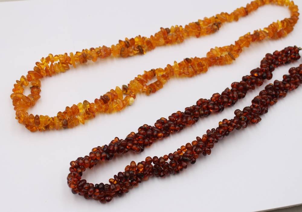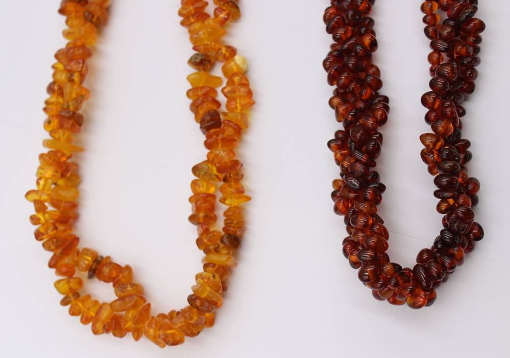 2x div. Bernsteinketten, zus. ca. 144gr., ca. L-66cm [1]