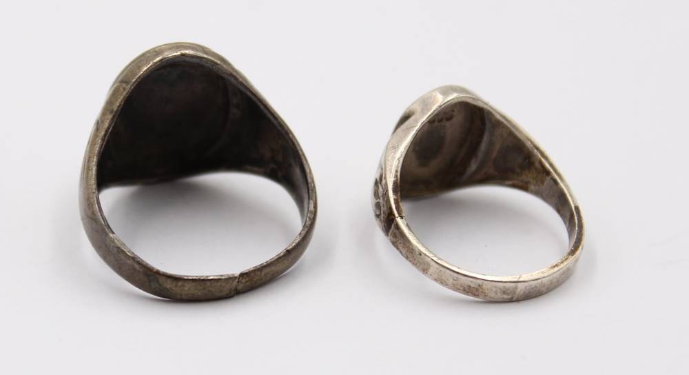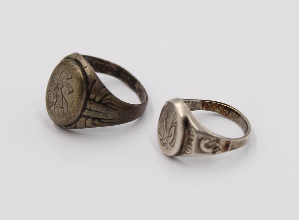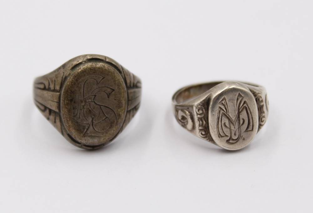 2x div. frühe Silber-Ringe mit Ziermonogrammen, 1x Schiene gebrochen, RG 54, zus. 10,5gr. [1]