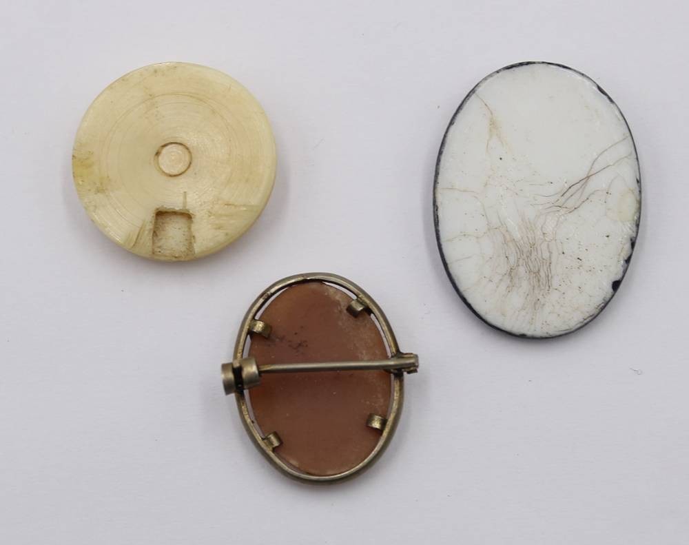 2x div. Gemmen sowie eine kl. Beinschnitzerei, älter, Größte ca. 3 x 2,3cm [1]