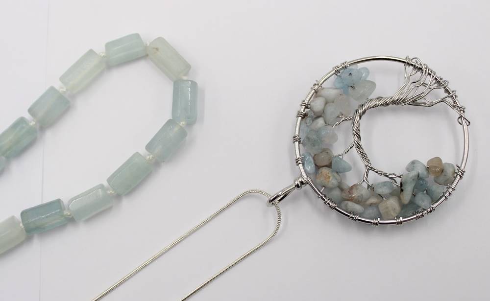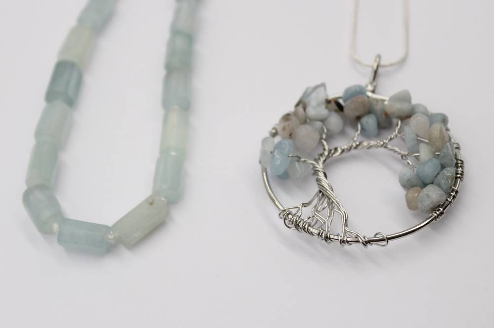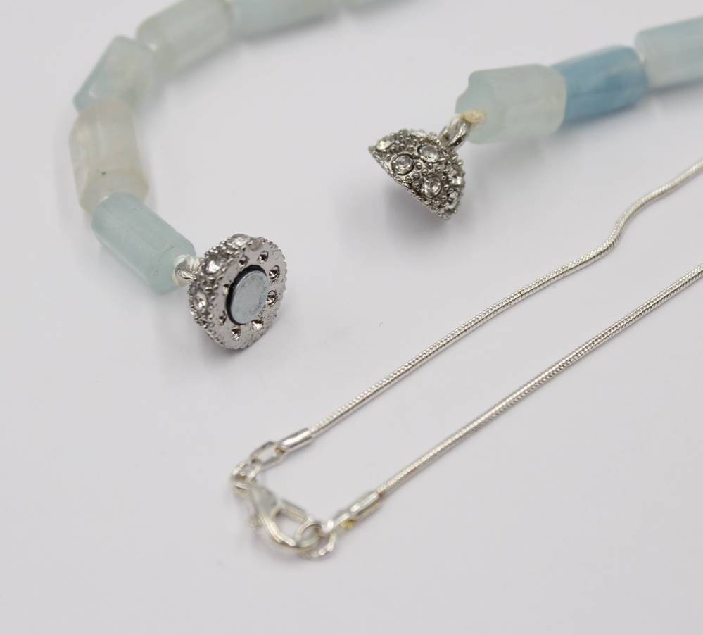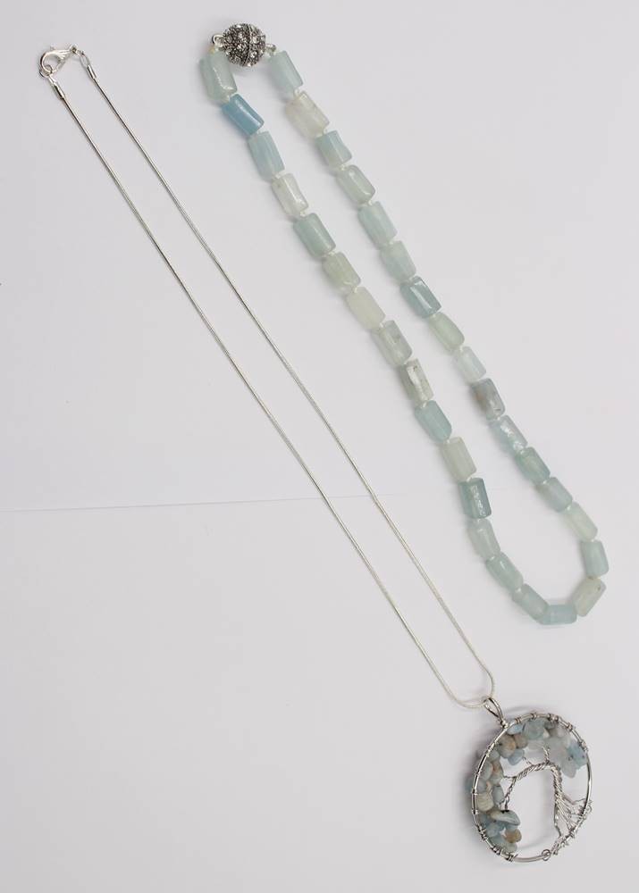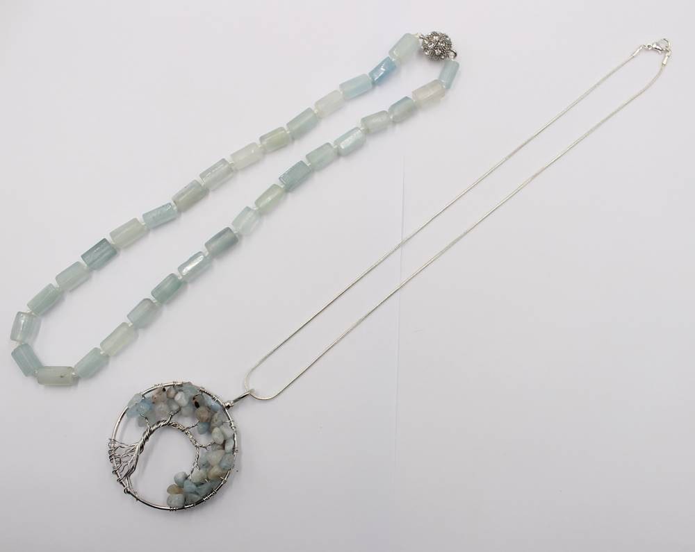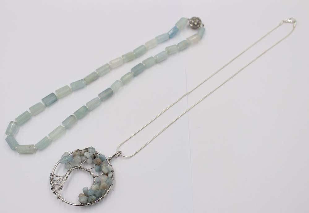 2x div. Halsketten, 1x Aquamarin-Rondellen und 1y versilberte Kette mit Aquamarin-Anhänger, ca. L-47cm, Anh. D-5cm [1]