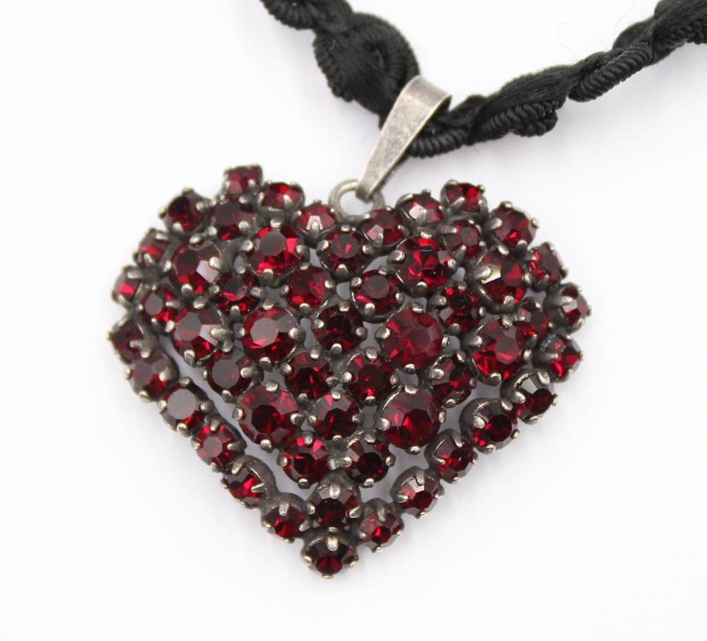 2x div. Ketten, lila Steine und 1x Stoffband mit Granatherz, ca. L-60cm