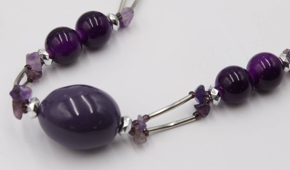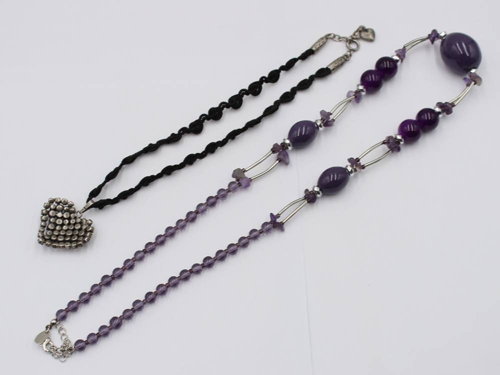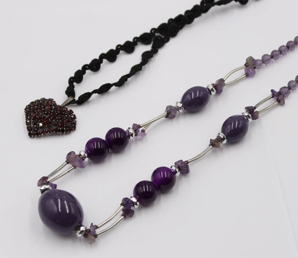 2x div. Ketten, lila Steine und 1x Stoffband mit Granatherz, ca. L-60cm [1]