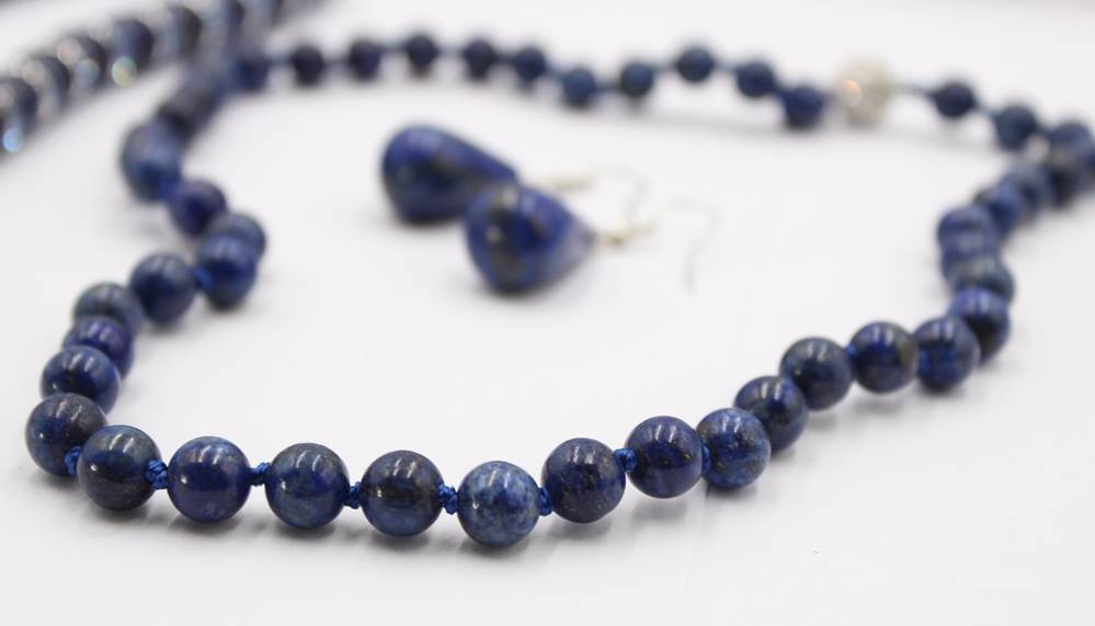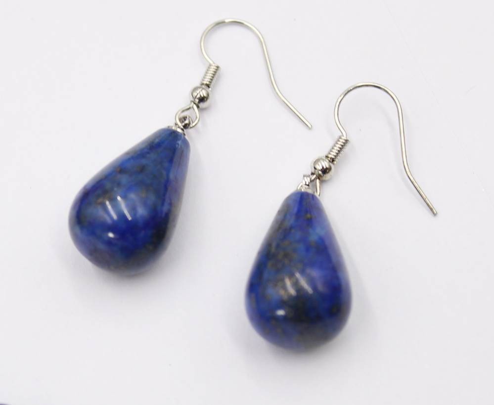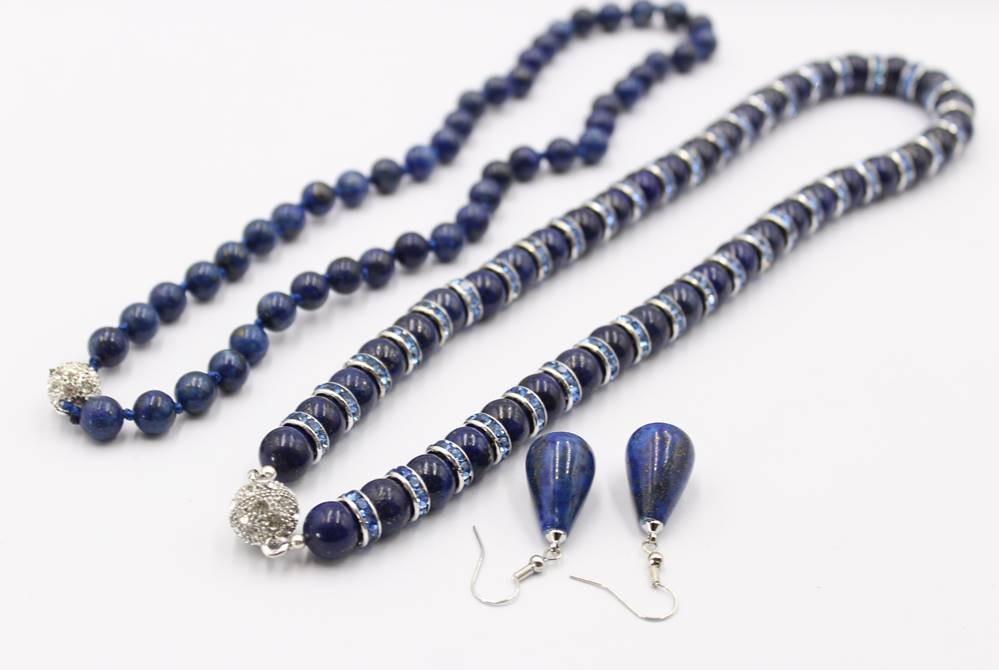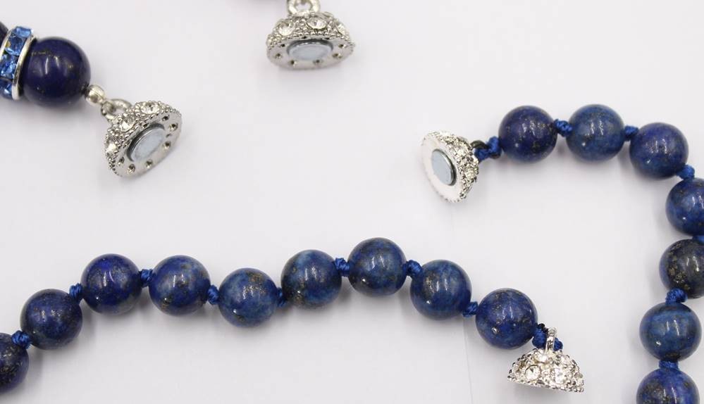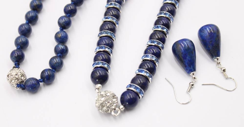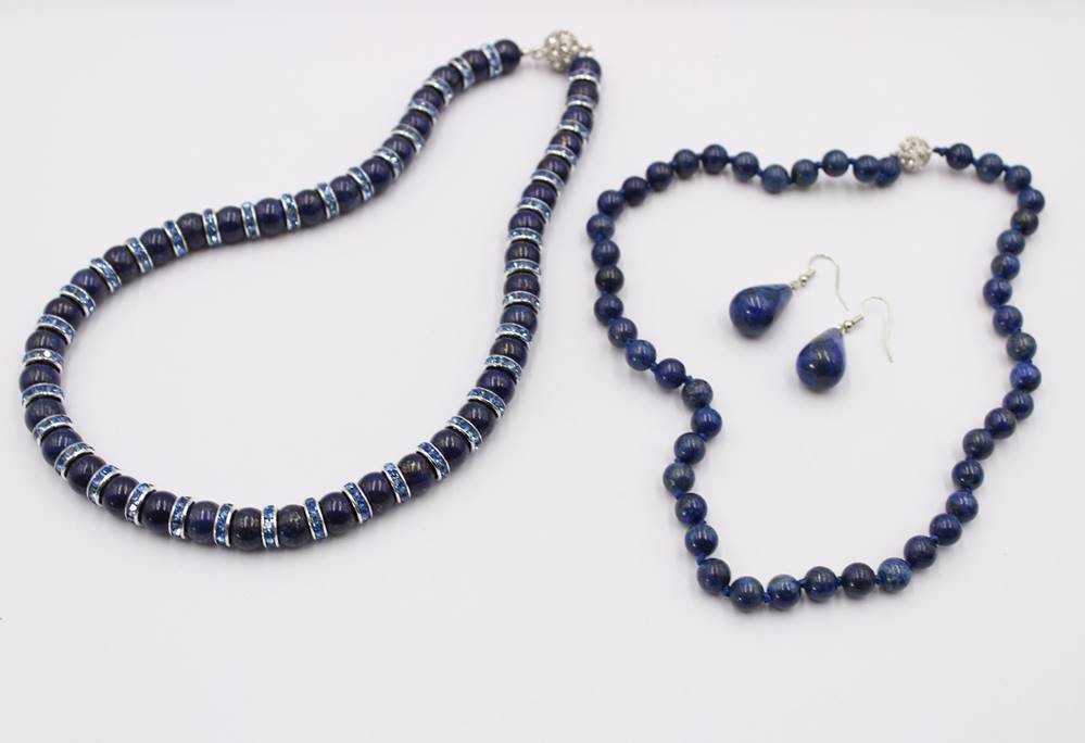 2x div. Lapislazuli-Halsketten, Magnetschließen, sowie Paar Ohrhänger, ca. L-42cm [1]