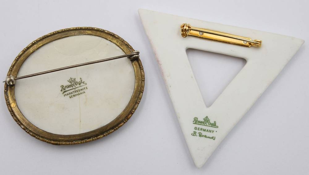 2x div. Porzellanbroschen, Rosenthal, ca. 5,5cm [1]