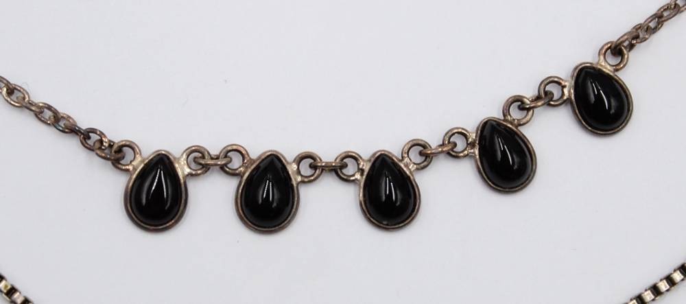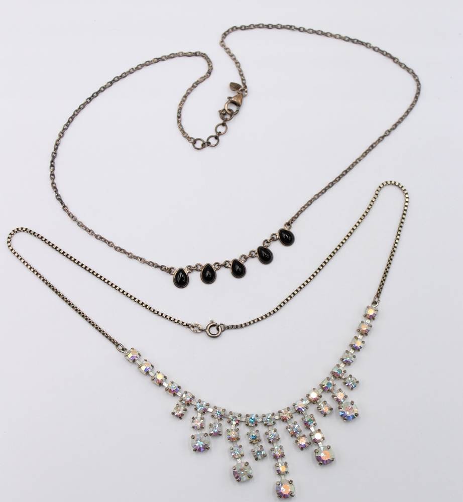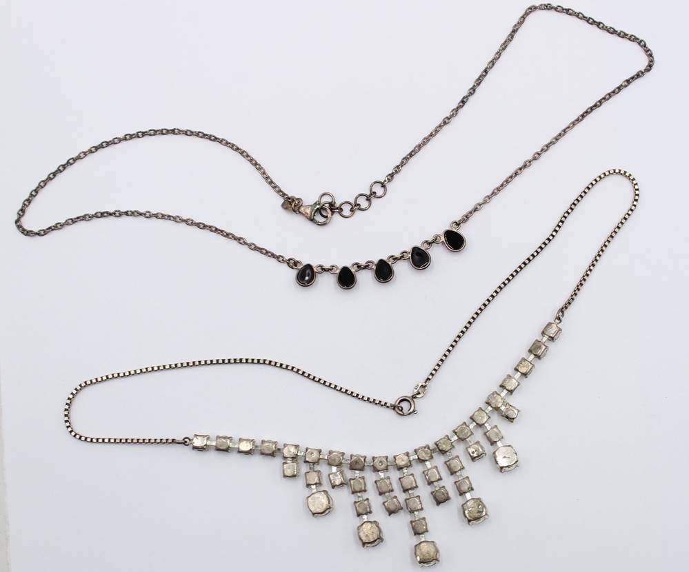 2x div. Silber-Colliers, 1x Strass und 1x Onyx, zus. ca. 20,2gr., L-45cm [1]