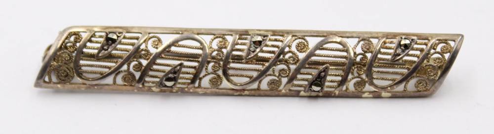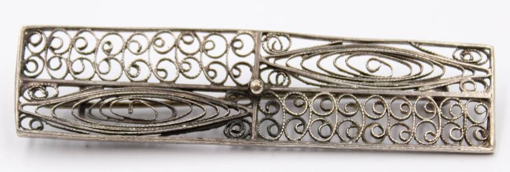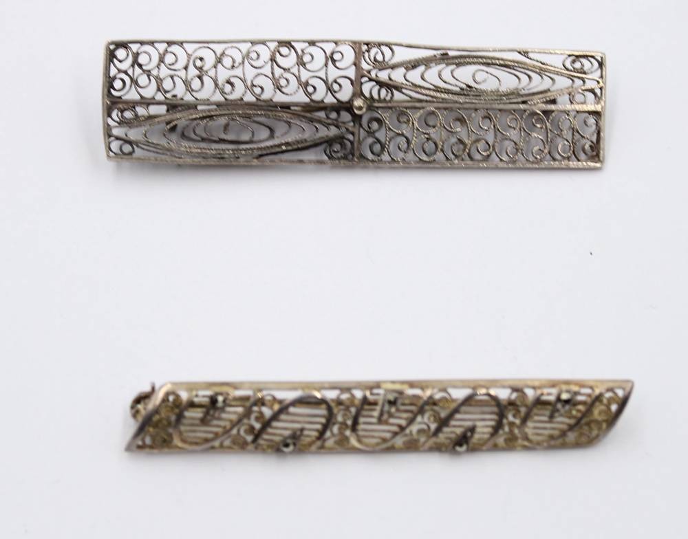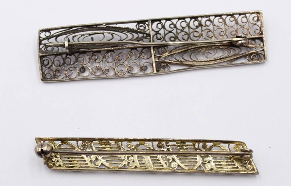 2x filigrane Silber-Broschen, älter, ca. 1,5 x 6cm, 8,9gr. [1]