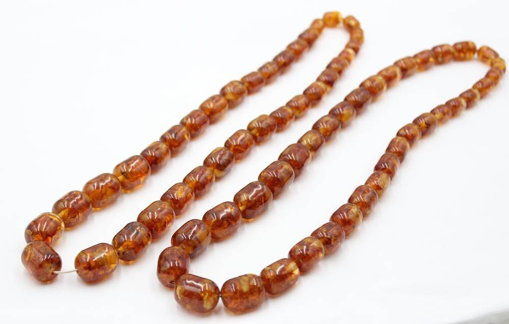 2x geklärte Bernstein-Halsketten, je endlos gearbeitet, zus. 215gr. [1]