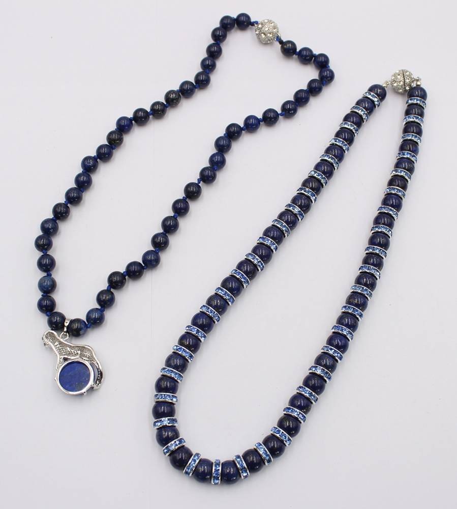 2x Halsketten, Lapislazuli, Magnetschließen, ca. L-45cm