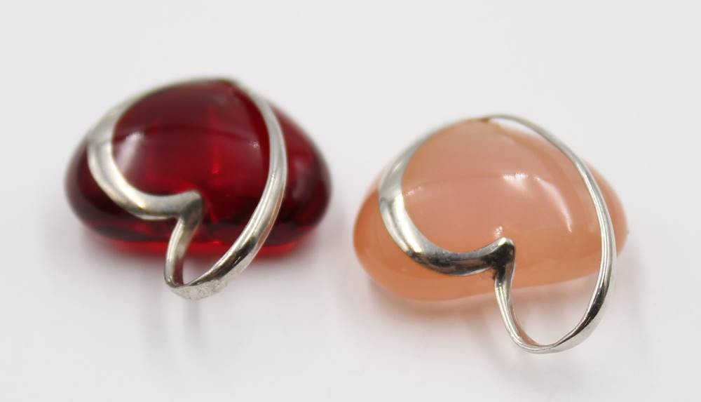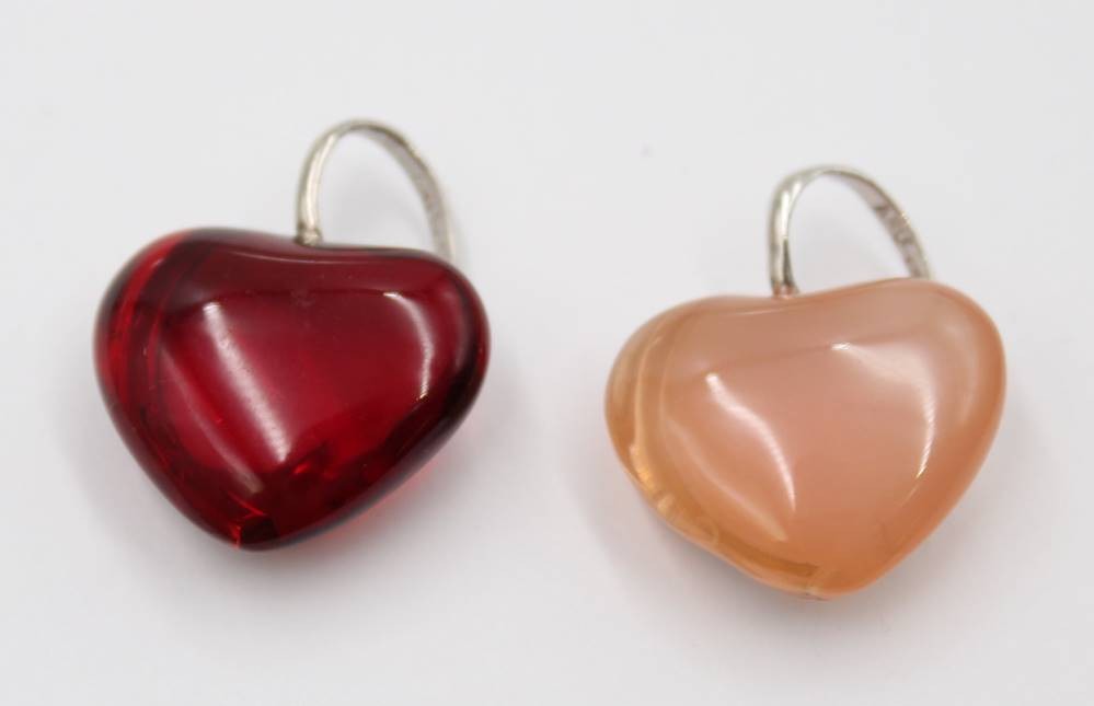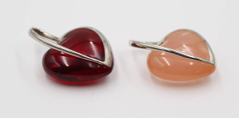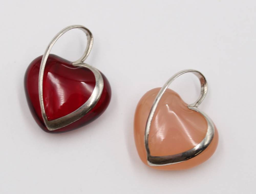 2x Herz-Anhänger, Silbermontur, Steine?, ca. 3 x 2,2cm [1]
