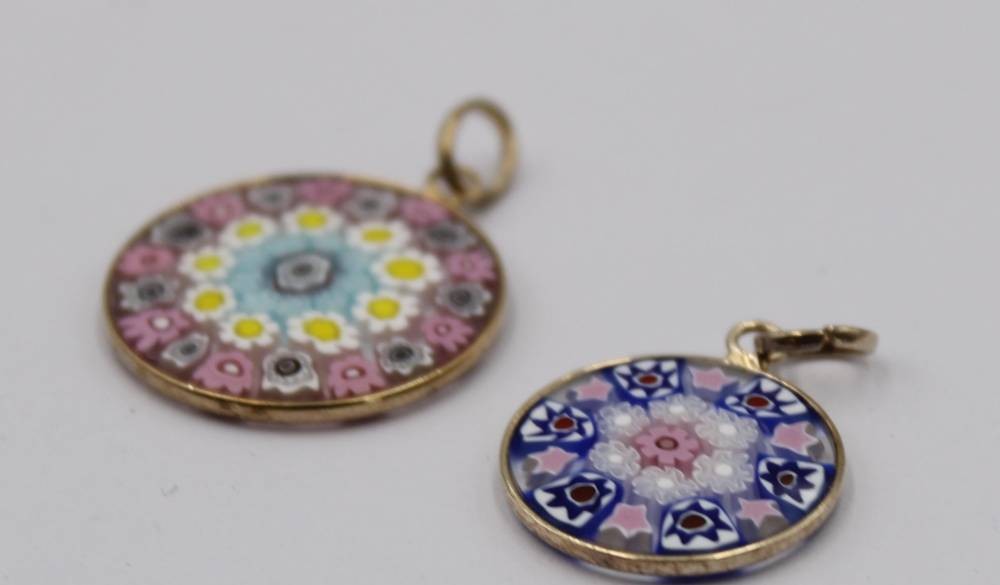 2x kl. Anhänger, Murano, Mille Fiori, ca. D-2 bis 2,5cm