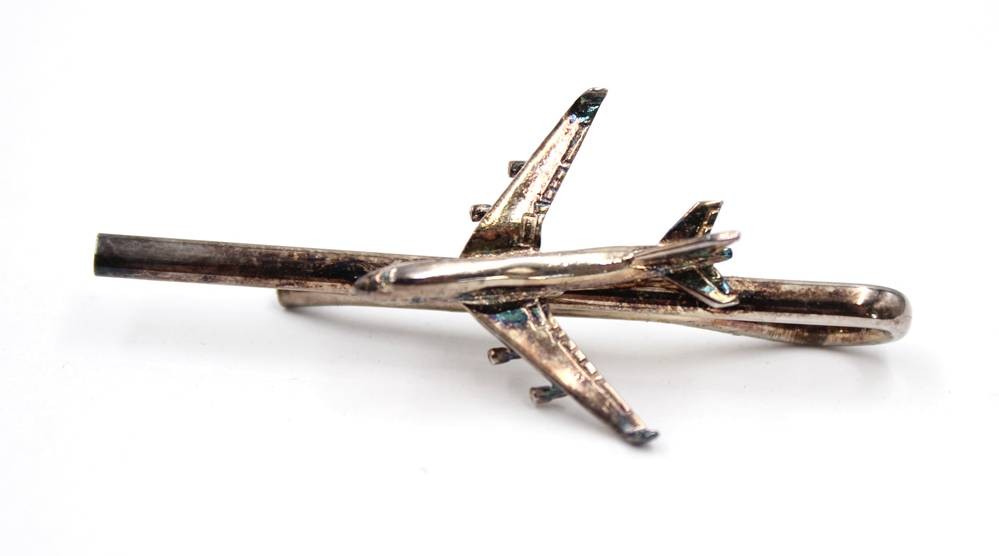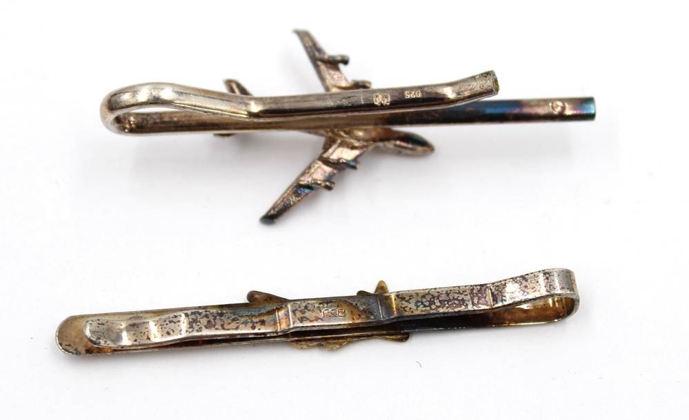 2x Kravattennadeln, Silber, je mit Flugzeug, zus. ca. 13,3gr., L-5,8cm [1]