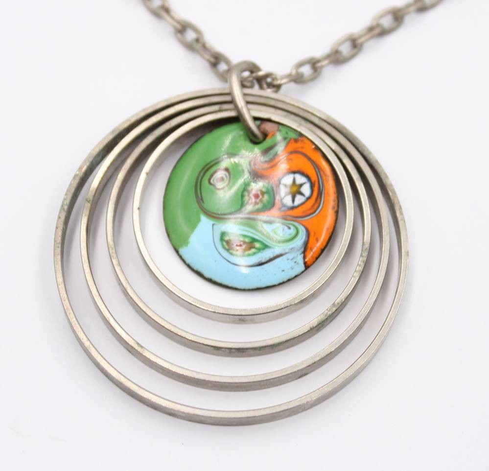 2x Modeschmuck-Halsketten mit emaillierten Anhängern, Anh- ca. D-5cm [1]