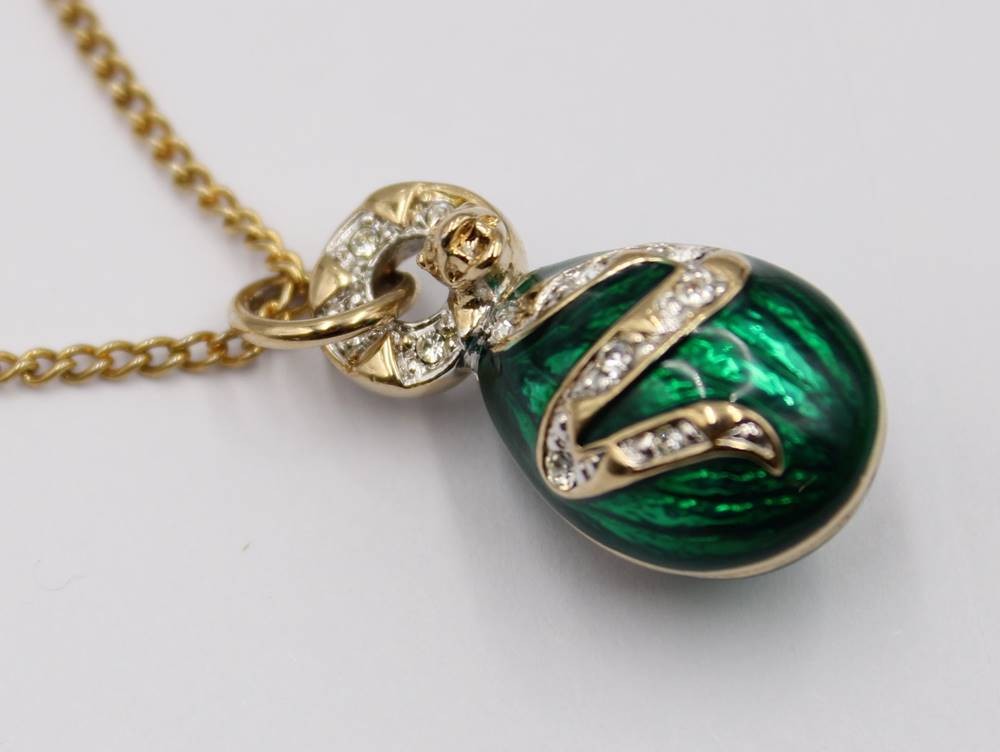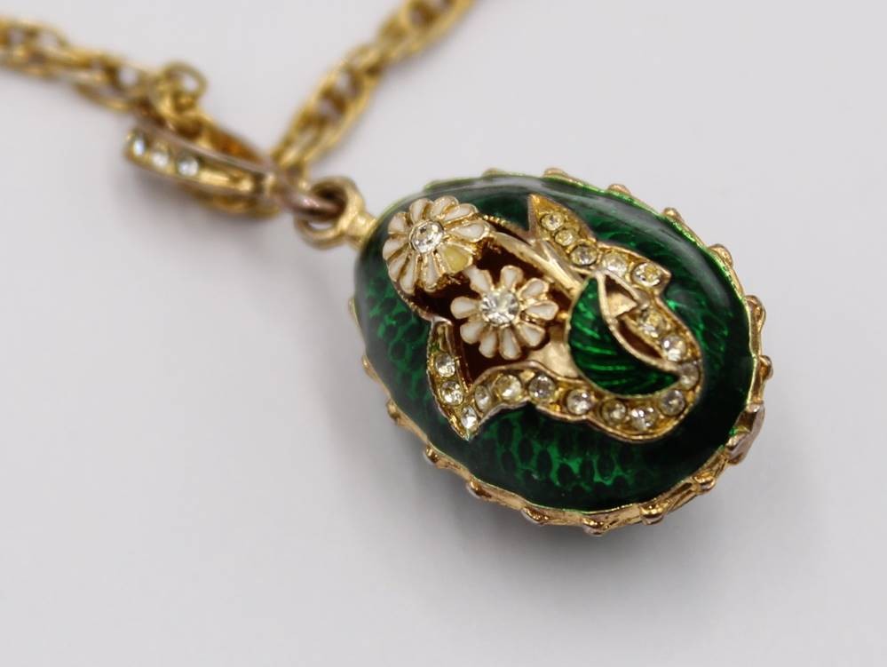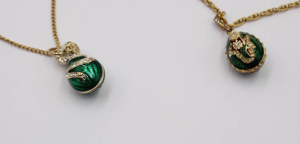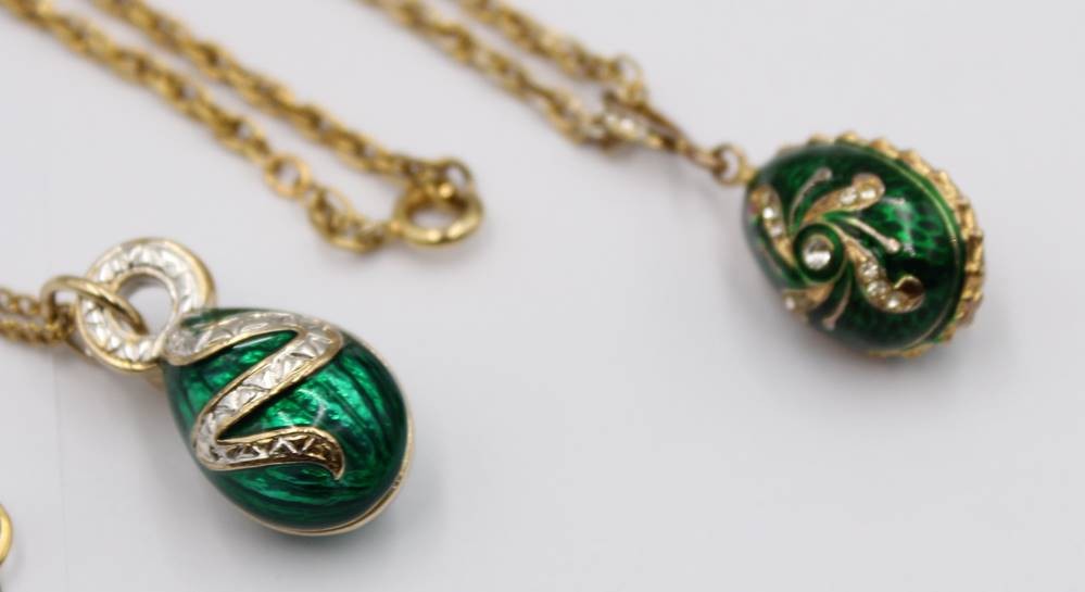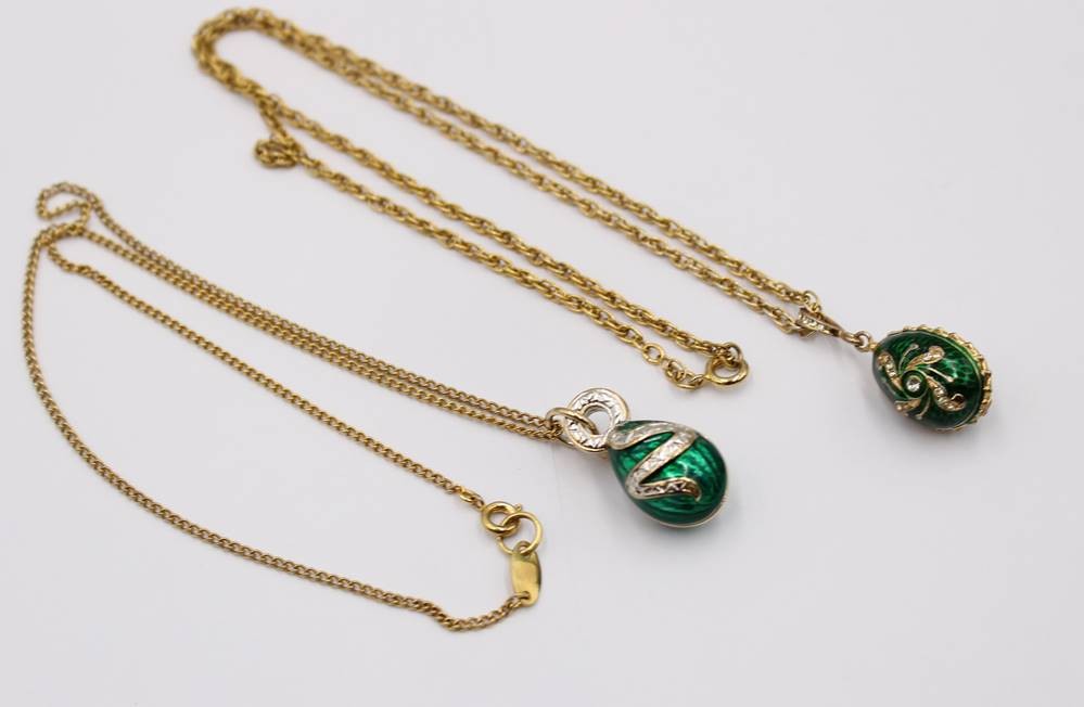 2x Modeschmuckketten mit emaillierten Anhänger in Fabergé-Art, ca. L-52cm Anh. 3,5cm [1]