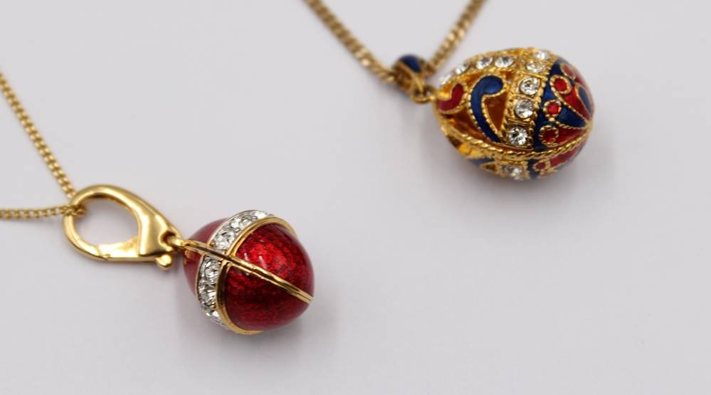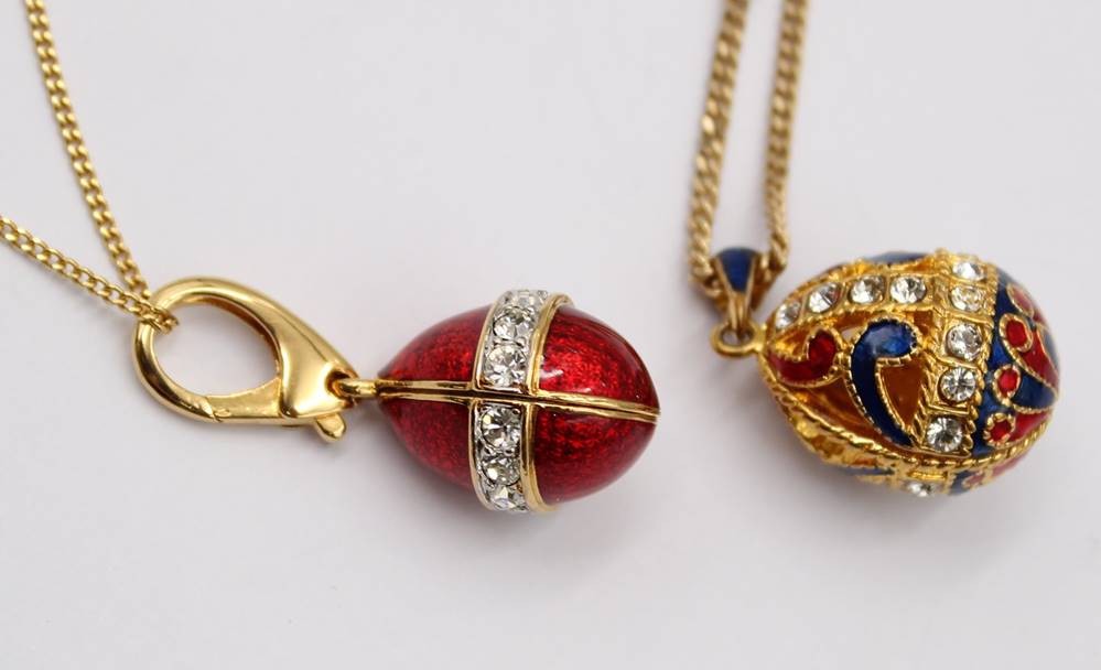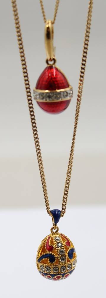2x Modeschmuckketten mit emaillierten Anhänger in Fabergé-Art, ca. L-52cm Anh. 3,5cm [1]