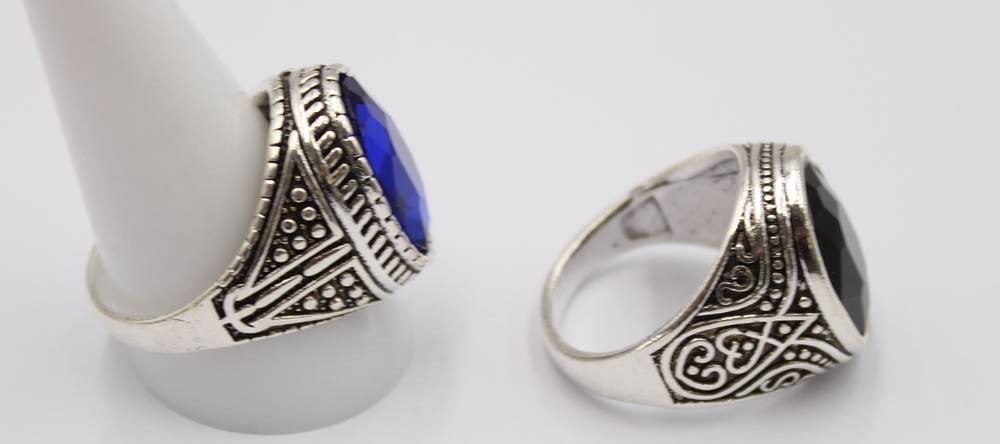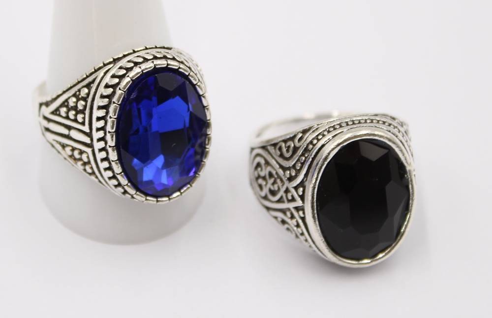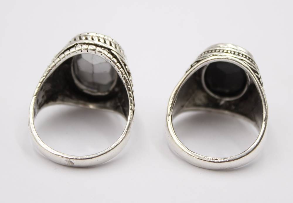 2x Modeschmuckringe mit Steinbesatz, ca. RG 64/66 [1]