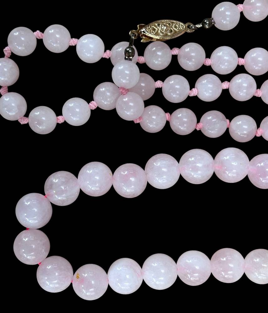 2x Rosenquartz Perlenketten, 1x 44 cm, D-1,1 cm, 1x L-80 cm, D-0,6 cm, zus. ca. 125 gr [1]