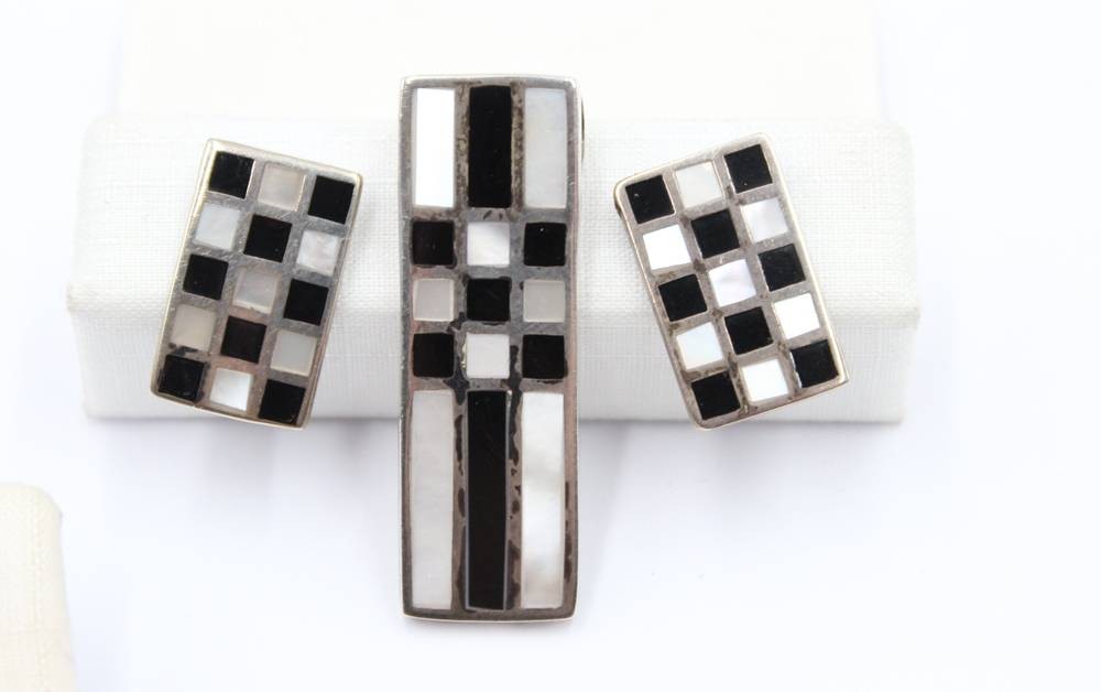 2x Sets, Ohrstecker und Anhänger sowie 3 Einzel-Ohrhänger, Silber, S/W-Anhänger L-3,5cm [1]