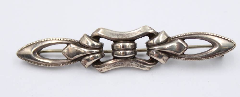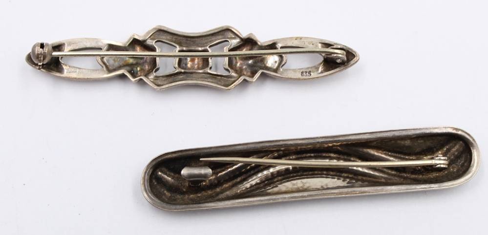 2x Silber-Broschen, 1x gepunzt 835, älter, zus. ca. 10,7gr., ca. L-6,5cm [1]