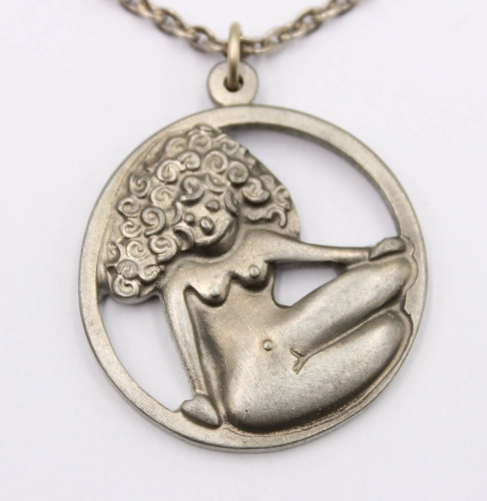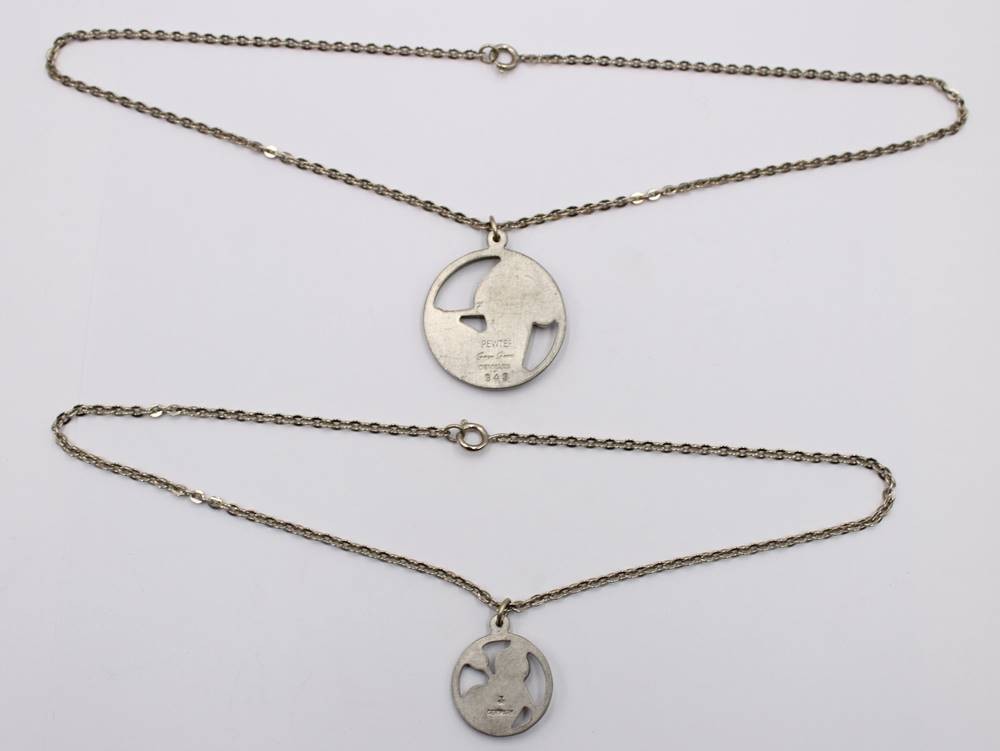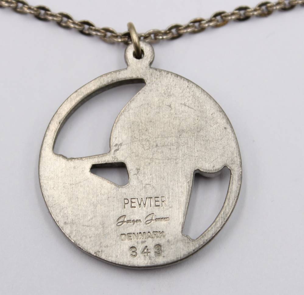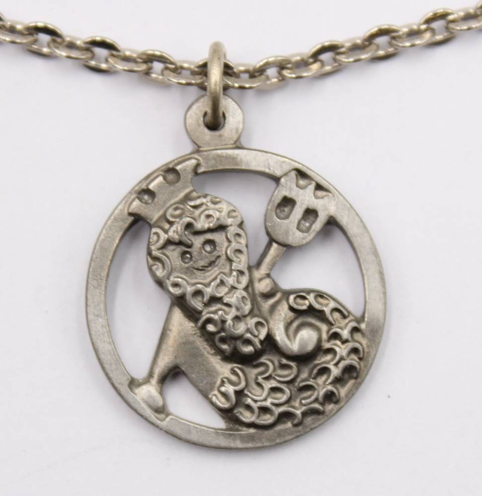 2x Zinn-Anhänger an versilberten Ketten, Jorgen Jensen, Sternzeichen, ca. D-3 und 2,5cm [1]