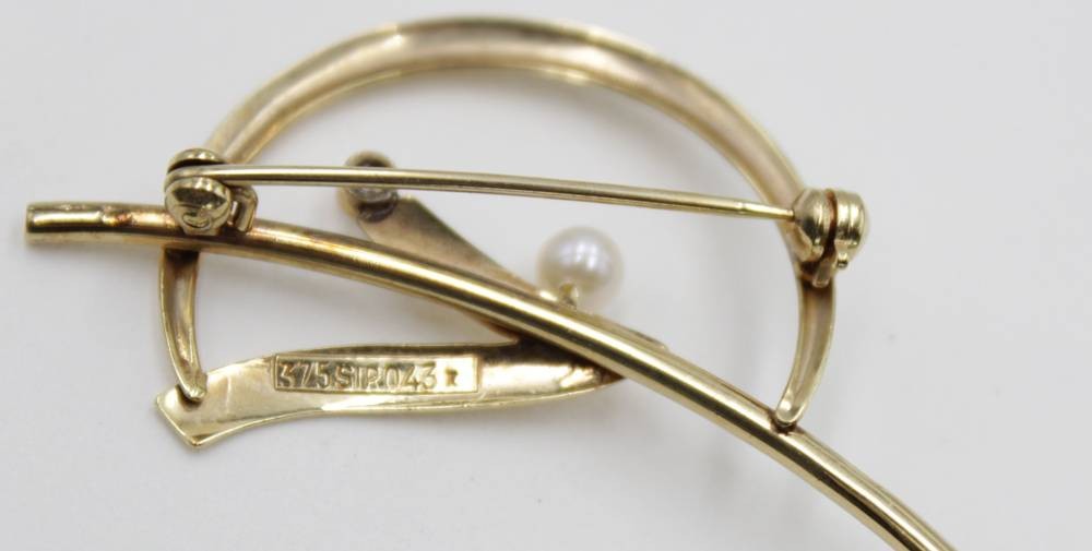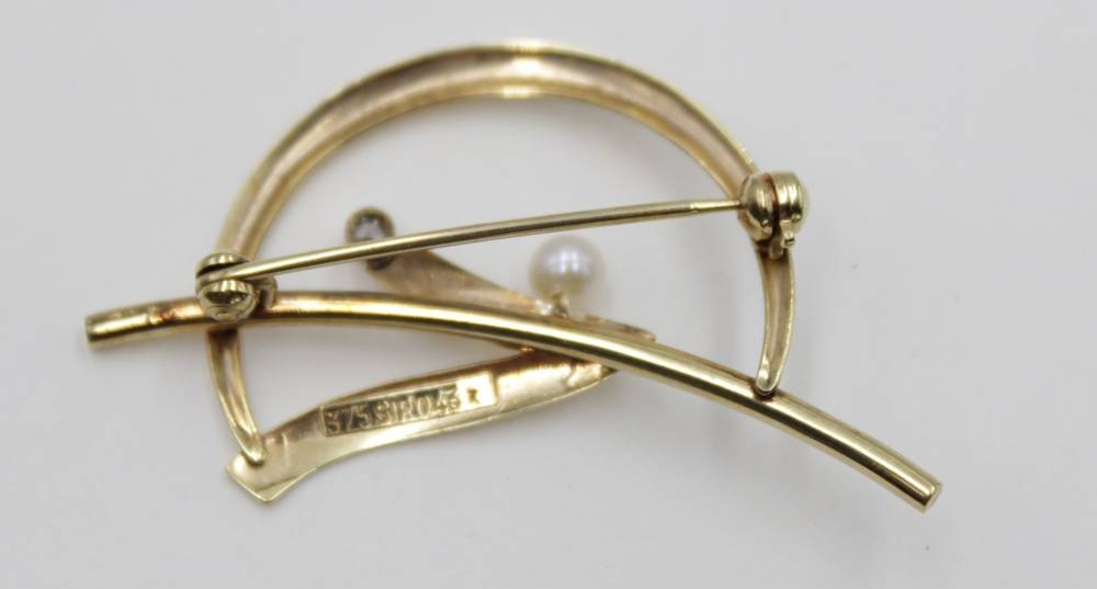 375er GG Brosche mit Perle und kl. klaren Stein, 2,6gr., [1]