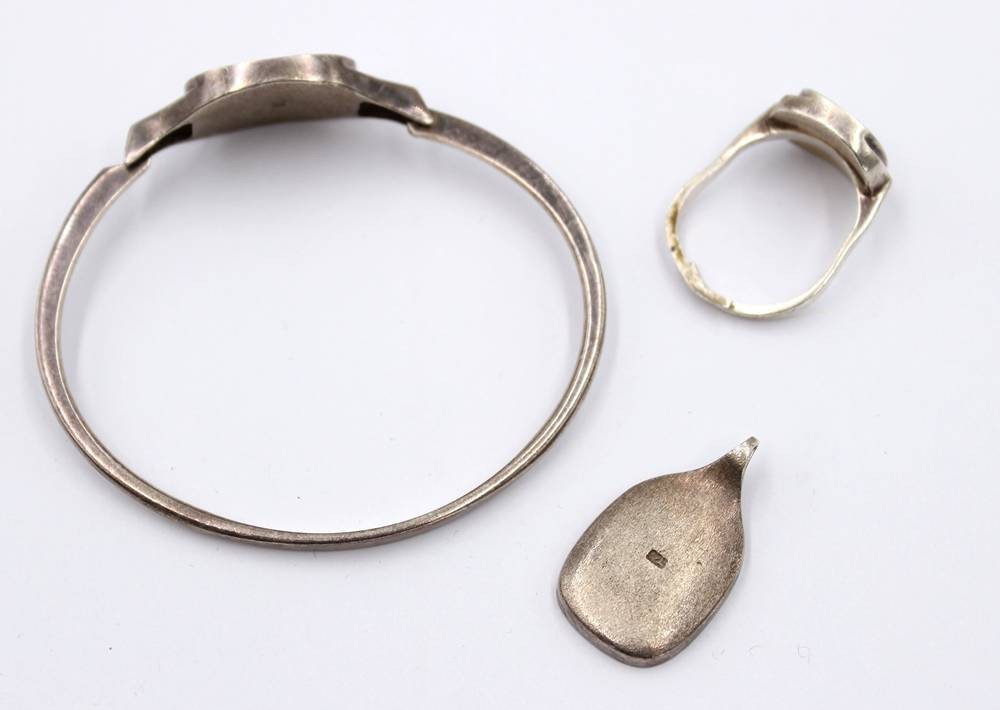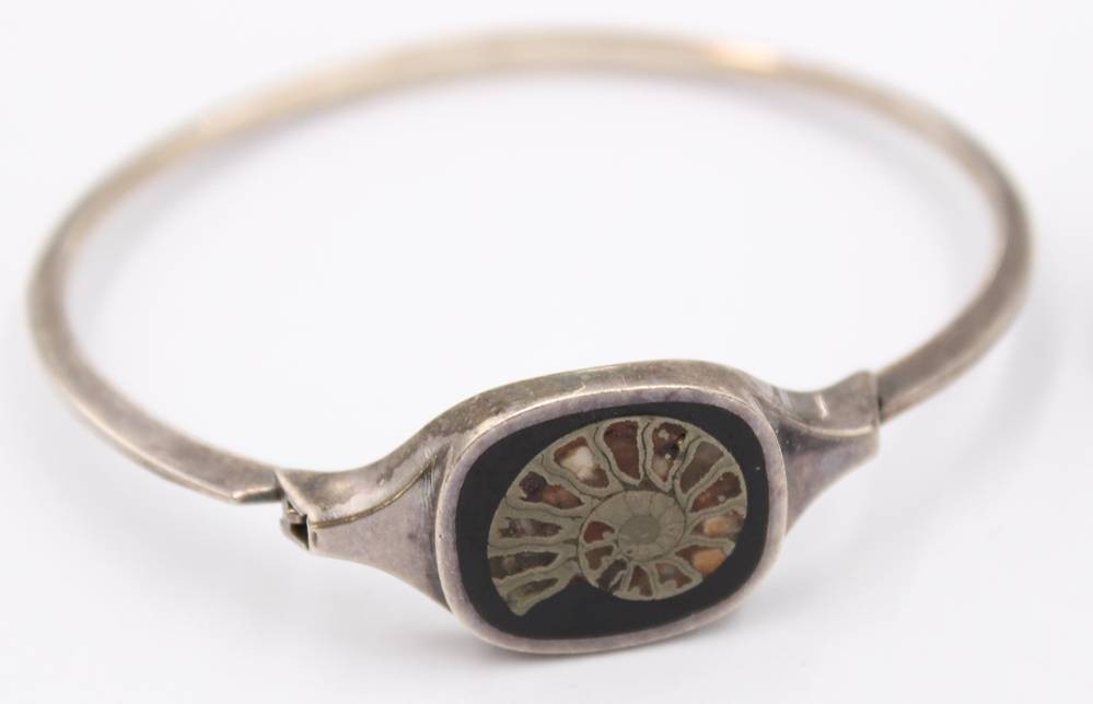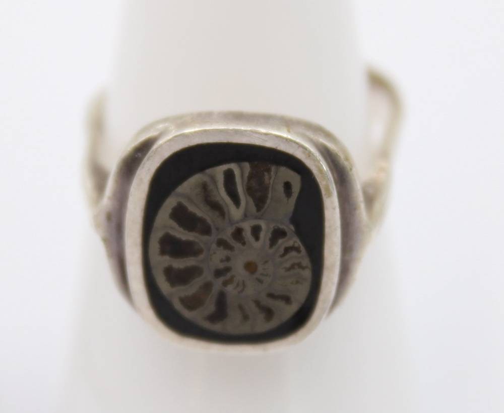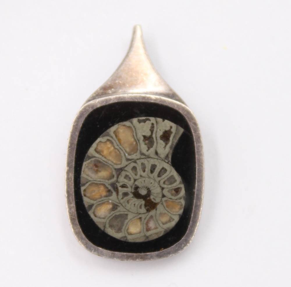 3tlg. Amonniten-Schmuckset, 925er Silber, Armband, Ring (offene Schiene) und Anhänger, zus. 25,4gr., ca. D-5cm, Anh. L-3,8cm [1]