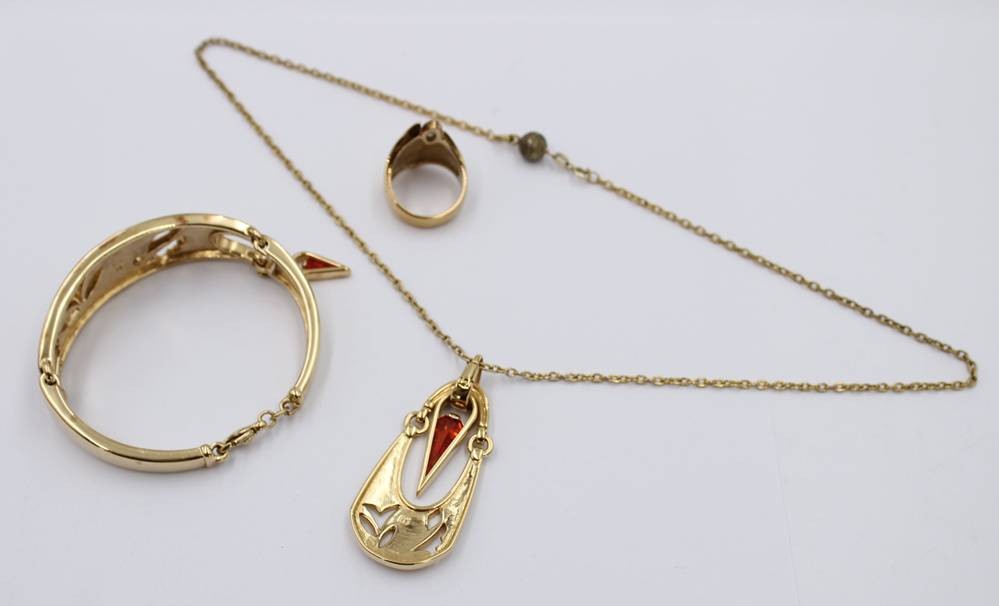 3tlg. Pierre Lang Schmuckset, Halskette, Armband und Ring, goldfarben, Steinbesatz [1]