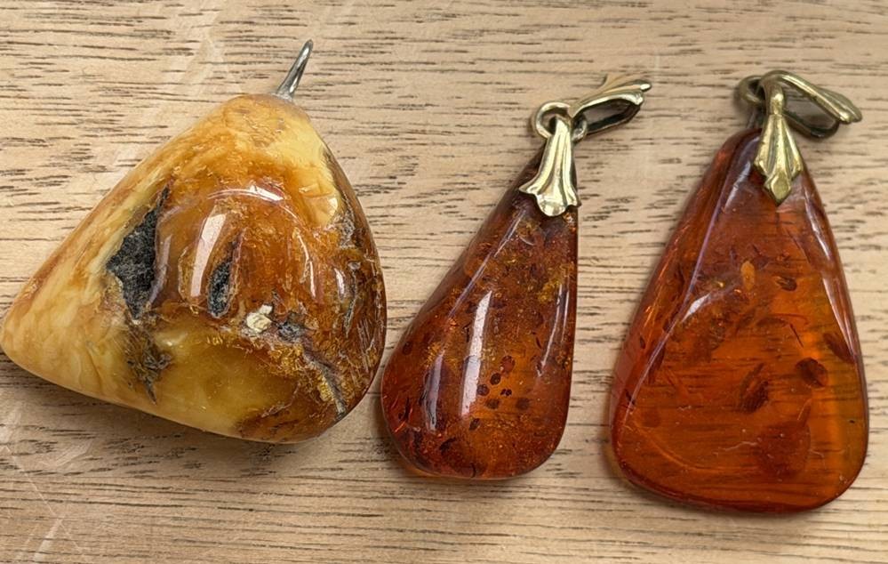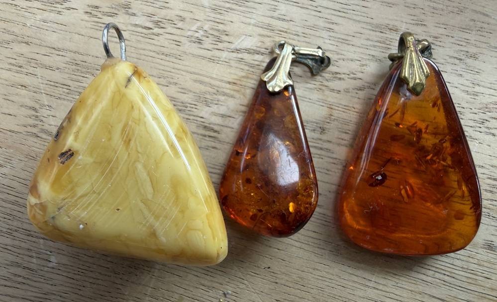 3x Bernstein-Anhänger, H-ca. 3,5 cm [1]