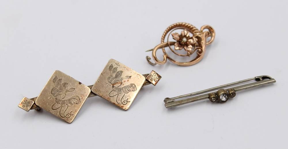 3x div. alte Broschen, 2x um 1900, ca. L-6cm [1]
