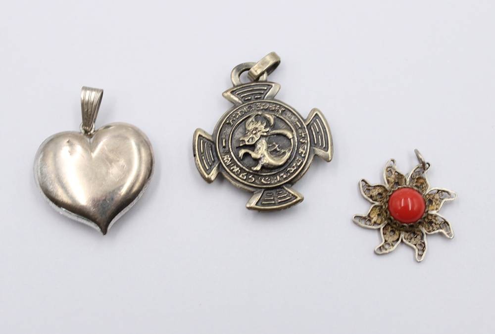 3x div. Anhänger, Silber, zus. ca. 20gr., 1x mit Magnet