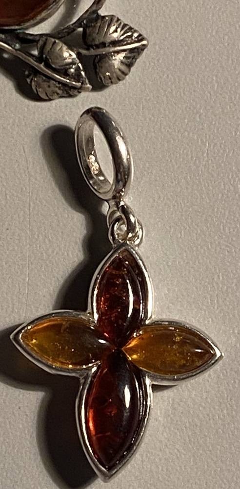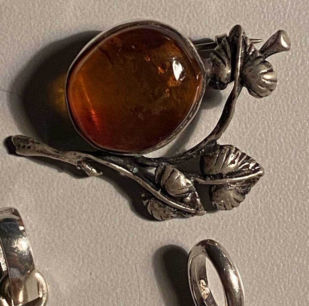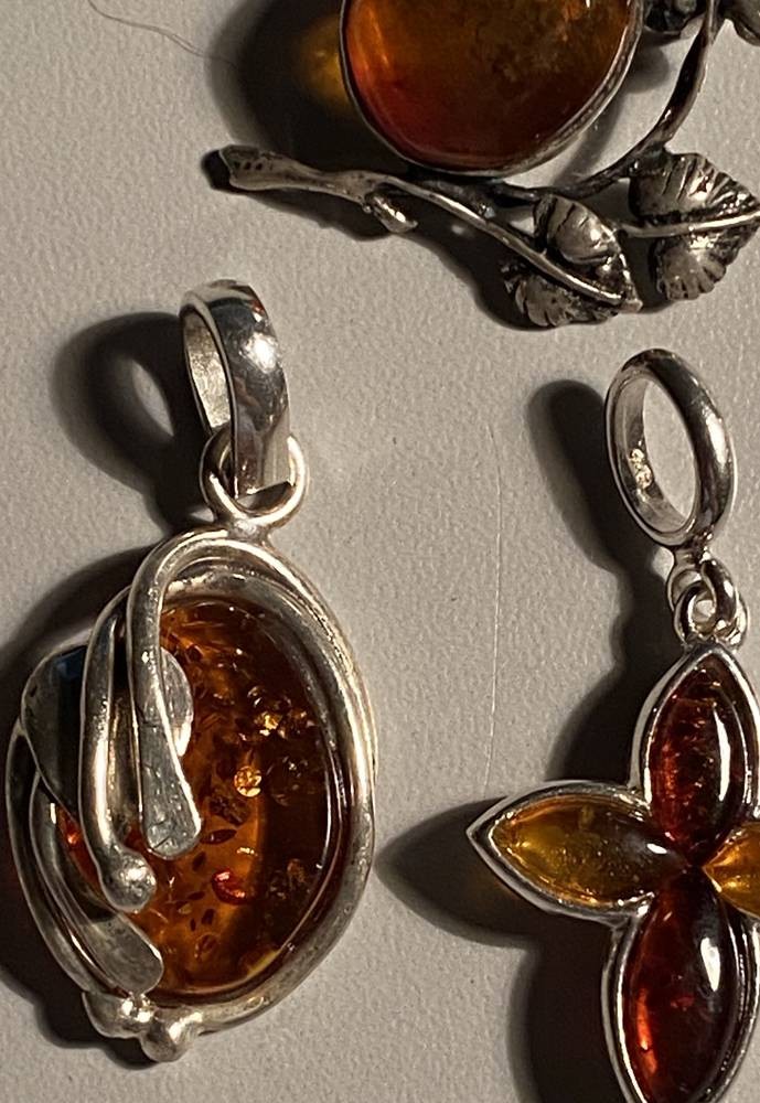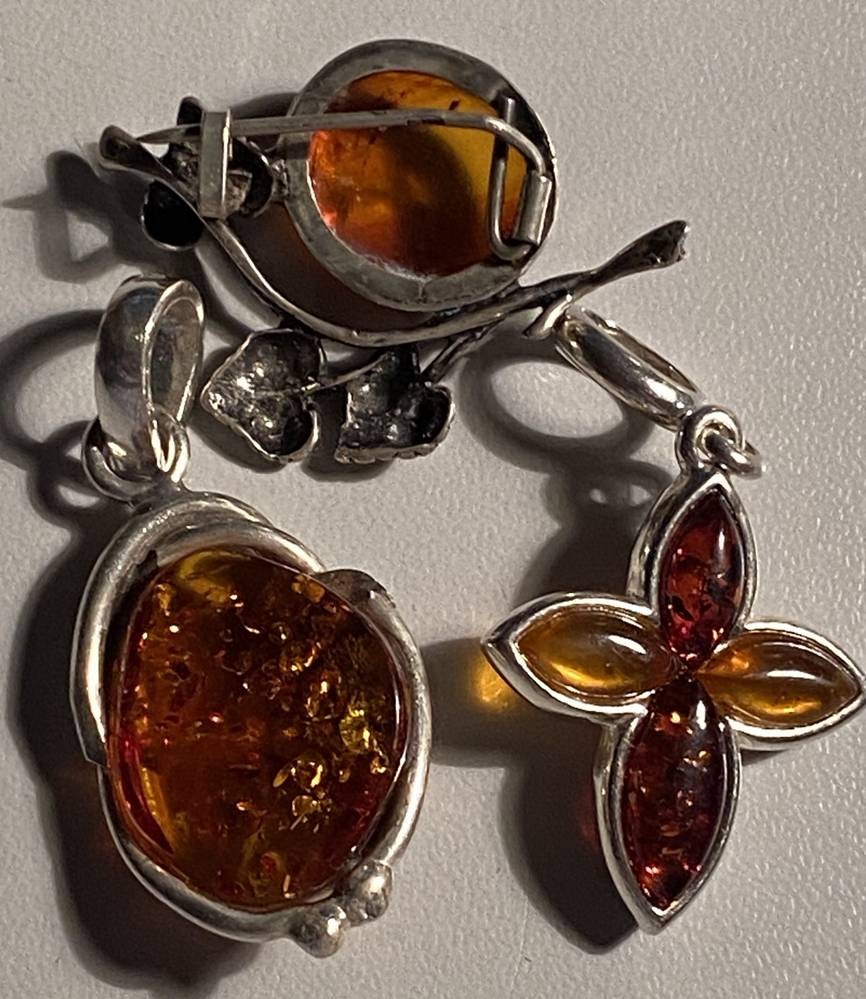 3x div. Bernsteinschmuck, 2x Anhänger S-925-, 1x Brosche S-875-, diese Baltikum, zus. 15,5 gr. [1]