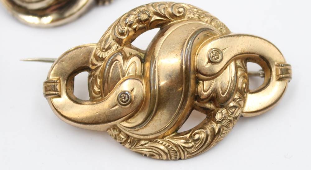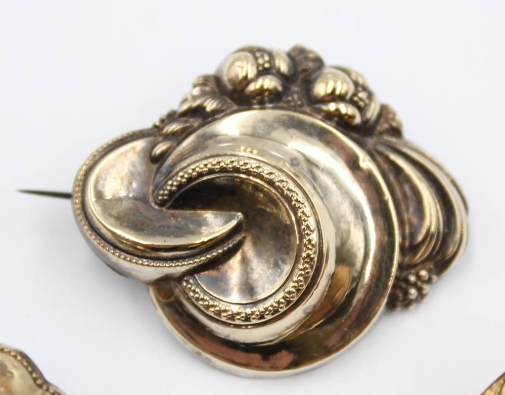 3x div. Biedermeier-Broschen, Schaumgold, 1x mit Onyx, ca. 3 x 4,8cm [1]