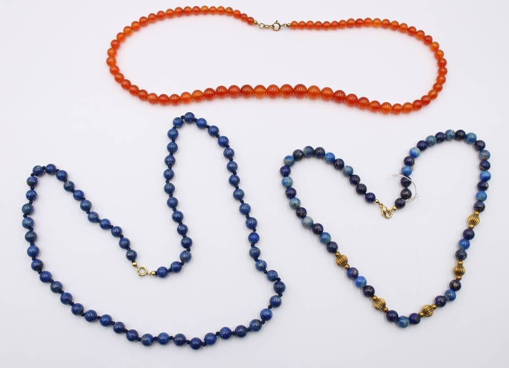 3x div. Halsketten, 2x Lapis und 1x Karneol, ca. L-68cm