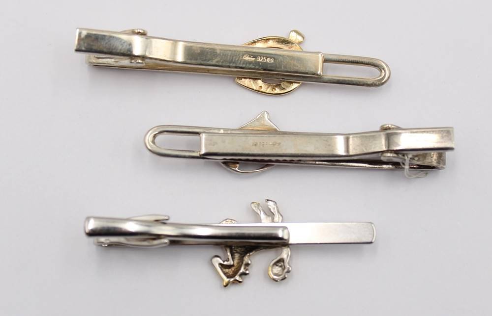 3x div. Kravattennadeln, 2x 925er Silber (zus. 17,1gr.) 1x Edelstahl, ca. L-6cm