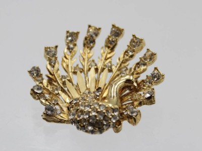 3x div. Modeschmuck-Broschen, 2x Floral, 1x Pfau, ca. D-5,5cm. [1]