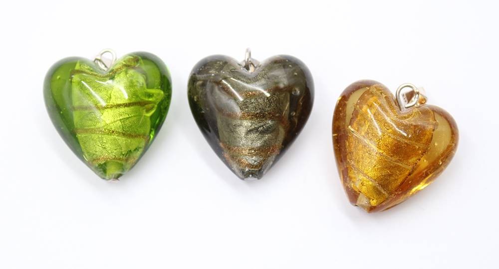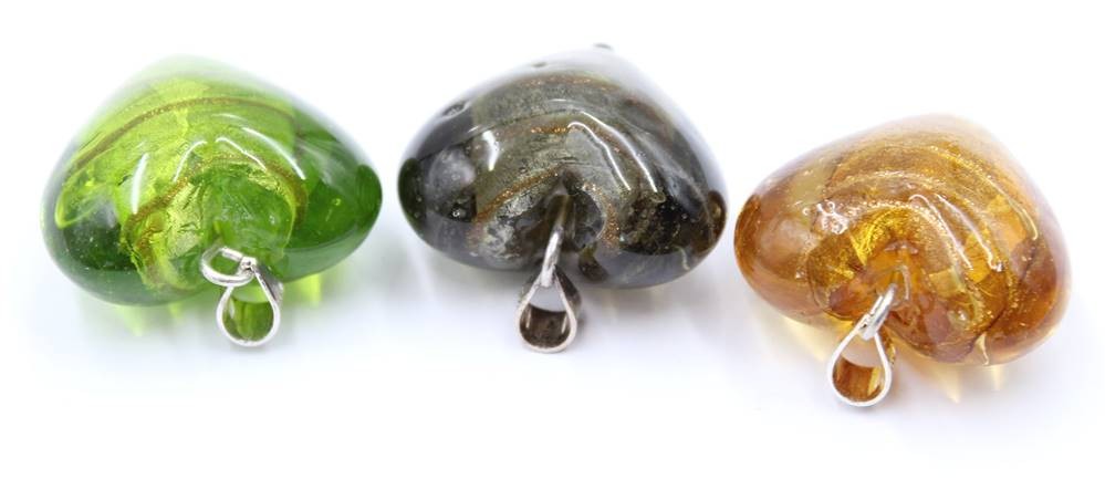 3x Herzanhänger, Murano, Silbermonturen, je ca. L-3cm