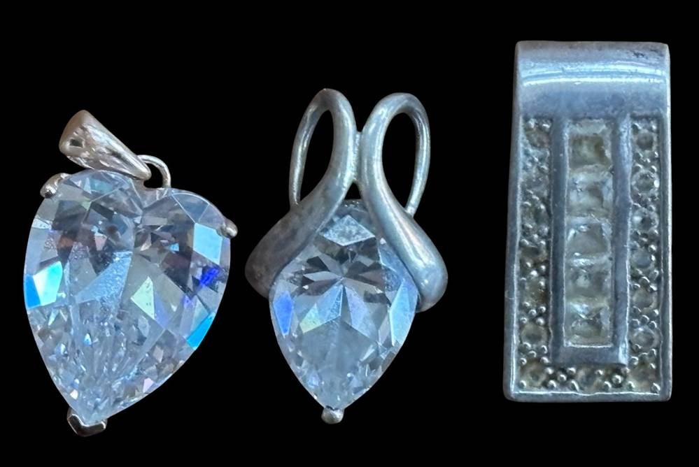 3x Silber-Kettenanhänger, -925-, klare Steine, ca. 10,8 gr [1]