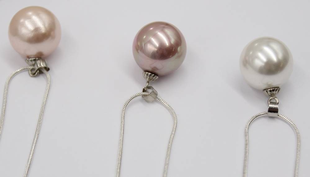 3x versilberte Halskette mit Muschelkern-Perlen, ca. L-50cm [1]