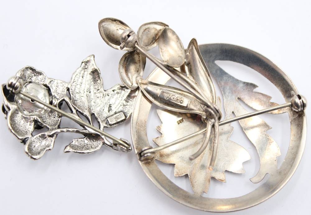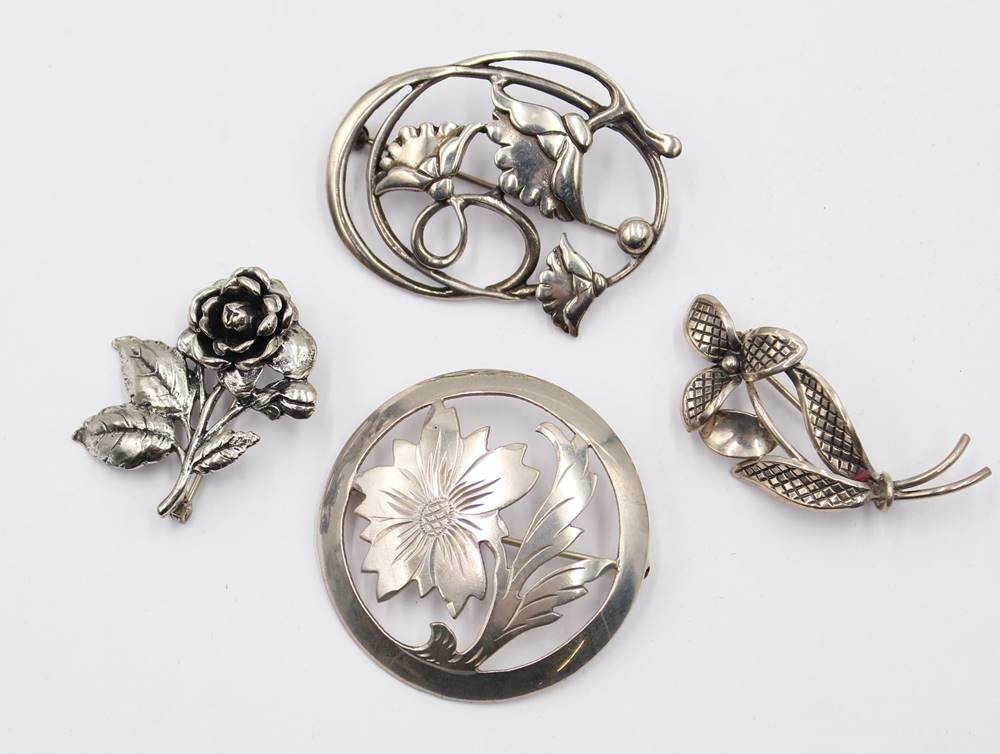 4 div. Silberbroschen mit Floralen Mustern , [1]