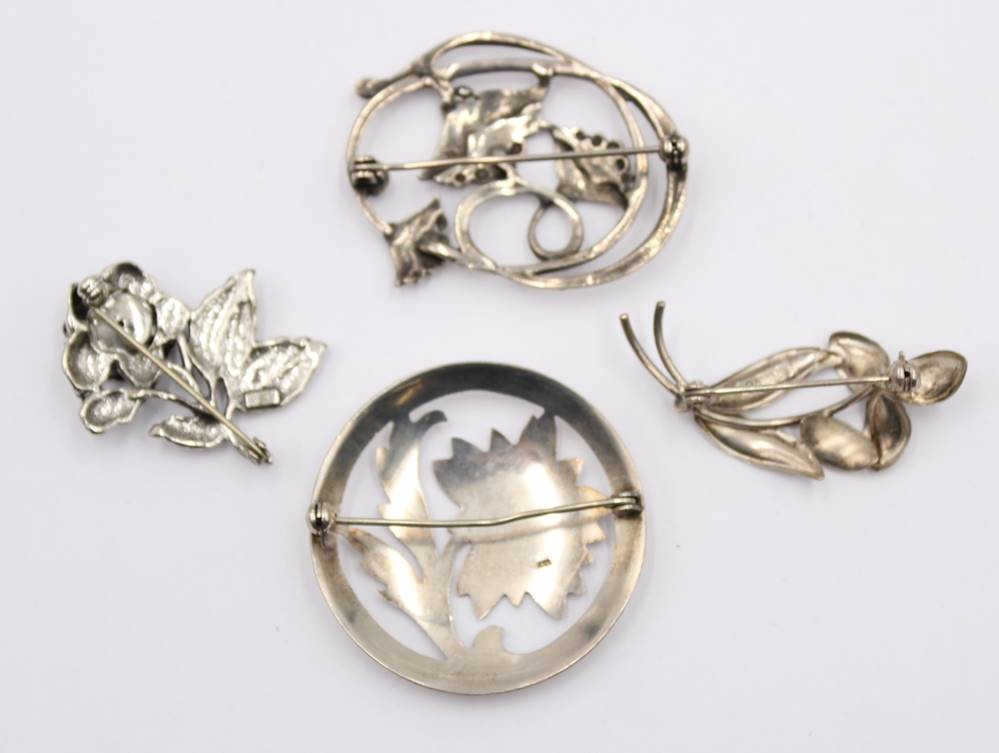 4 div. Silberbroschen mit Floralen Mustern ,