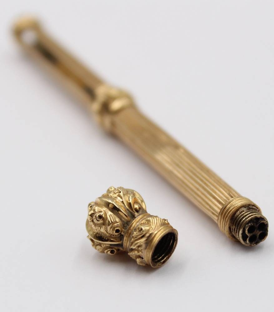 4 Farb-Stifthalter oder ähnliches, Gold-585- (14 Karat gestempelt) Mechanik defekt, bzw, fehlt, L-10 cm, 7,2 gr [1]
