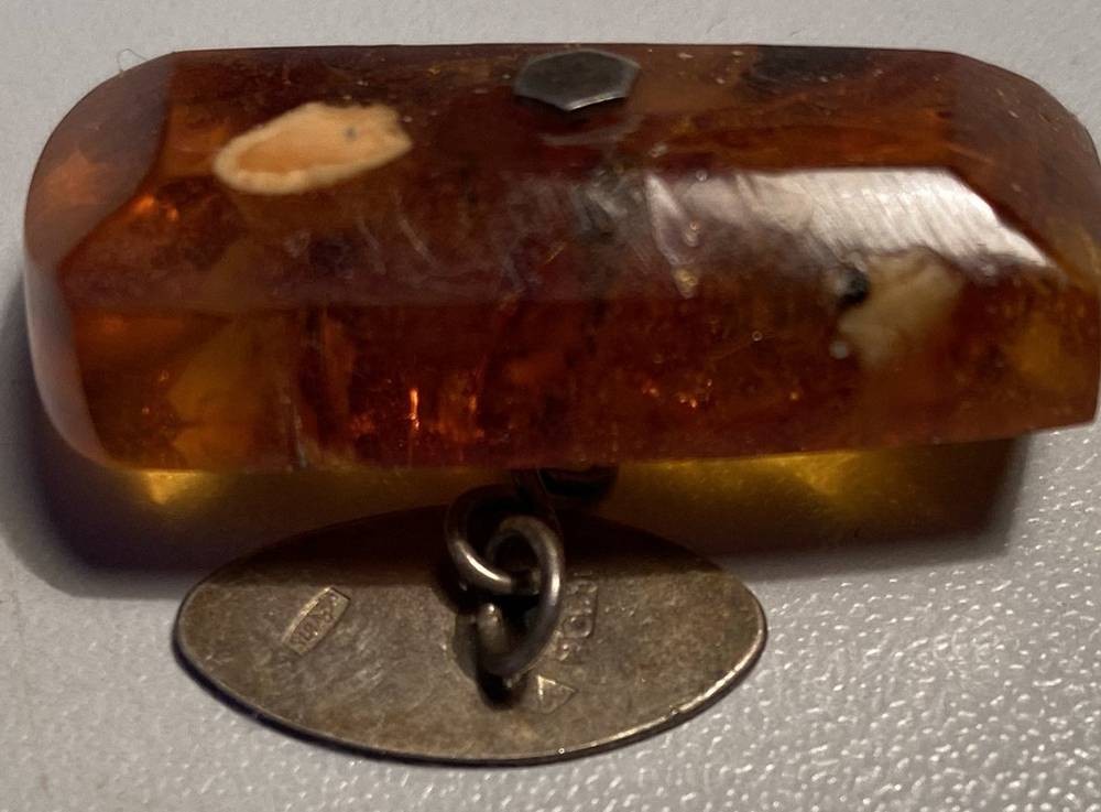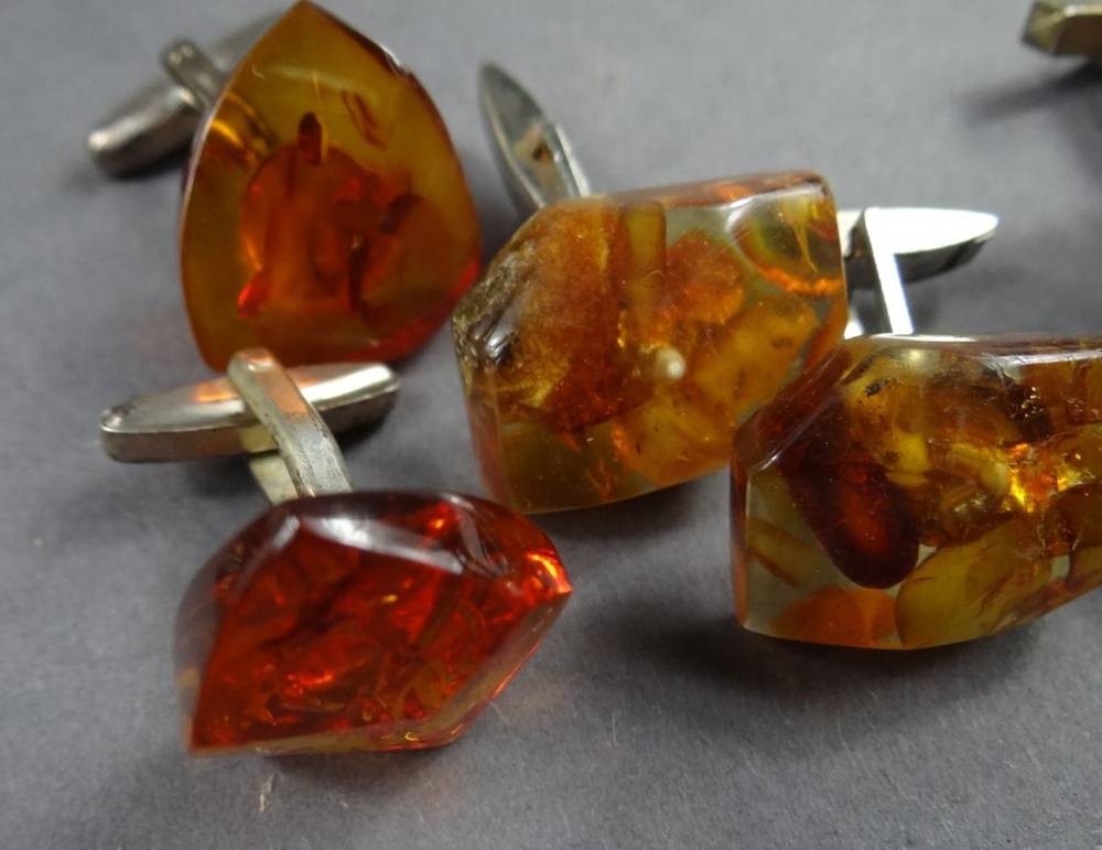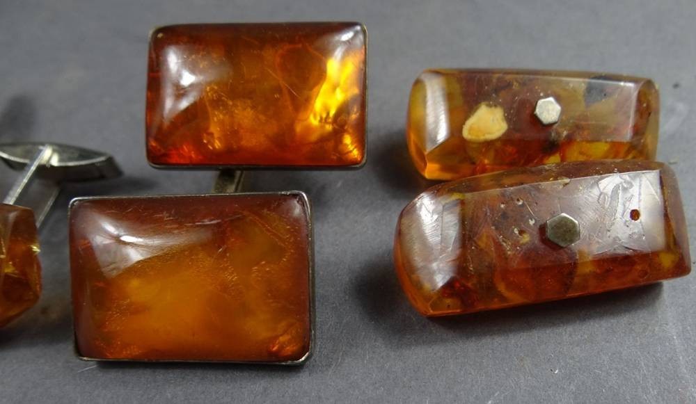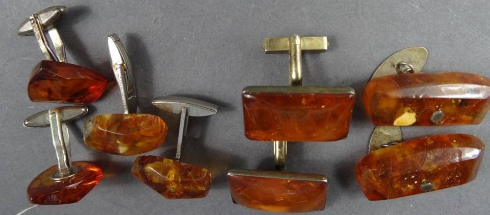 4 Paar Manchettenknöpfe mit Bernsteinen, 1x Silber-875- Baltikum/Königsberg, 1x -835-, 2x Metall, zus. 42 gr., alle älter, wohl Vorkrieg [1]