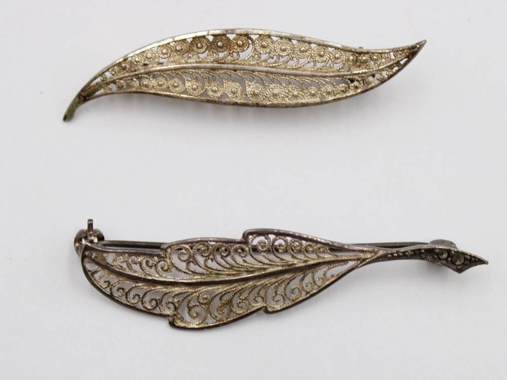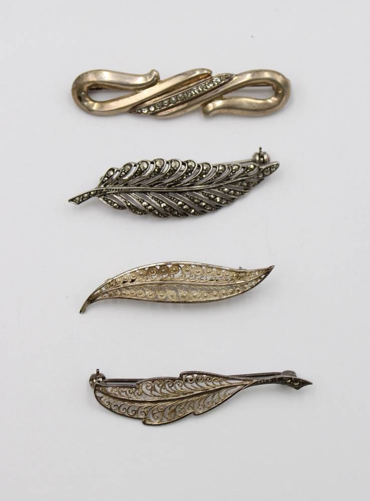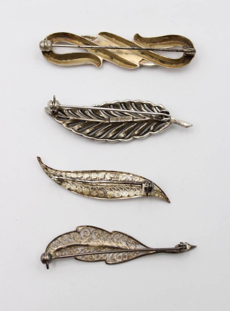 4x div. Silber-Broschen, 3x filigran Arbeit, zus. ca. 15,5gr., ca. L-5cm [1]