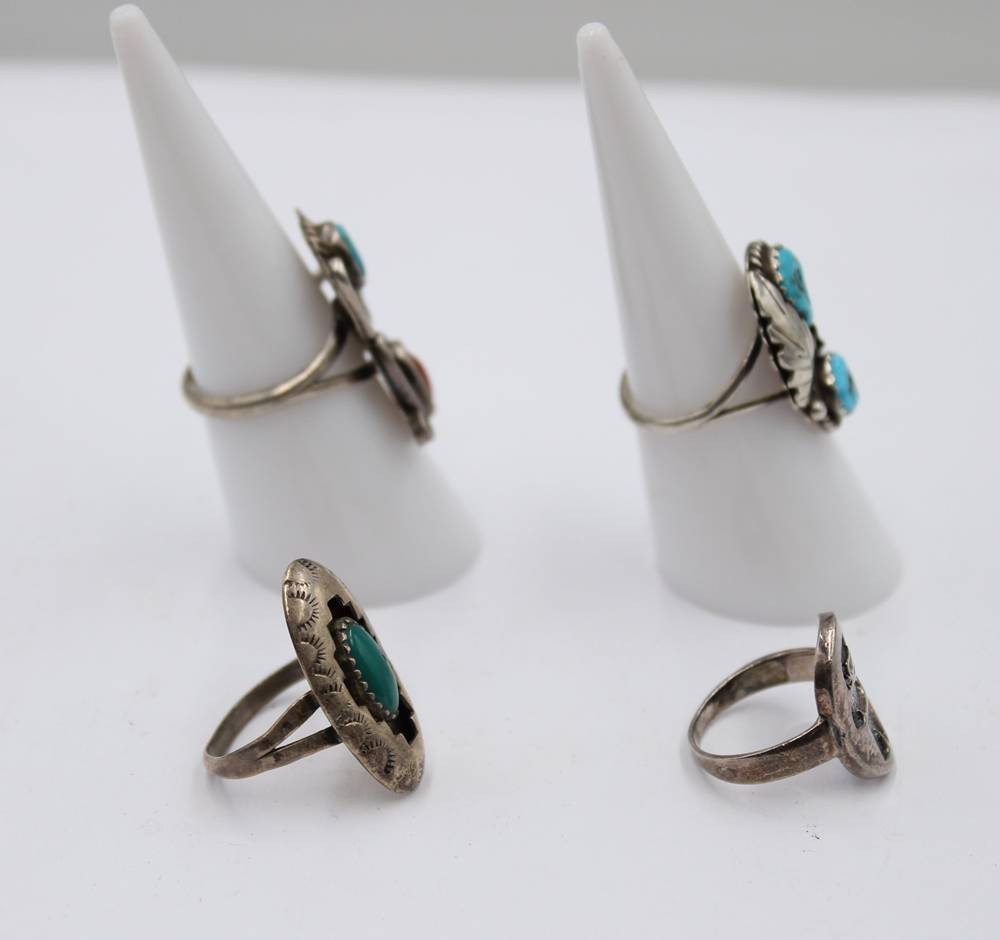 4x div. Silber-Ringe, 3x wohl Mexico, div. Steinbesatz, zus. ca. 14,1gr., RG 47-52 [1]