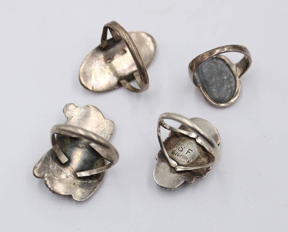 4x div. Silber-Ringe, 3x wohl Mexico, div. Steinbesatz, zus. ca. 14,1gr., RG 47-52