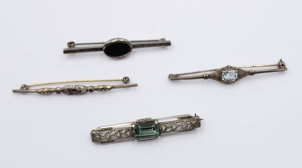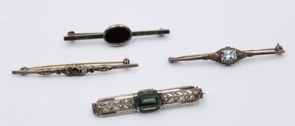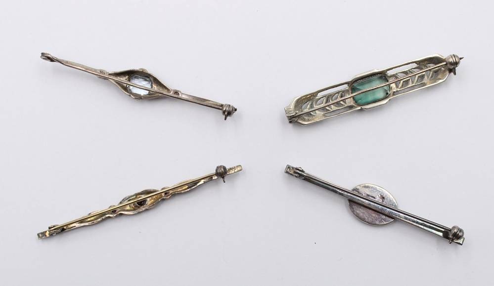 4x div. Stabbroschen, je mit Steinbesatz, älter, ca. L-6cm, zus. ca. 18,1gr., [1]