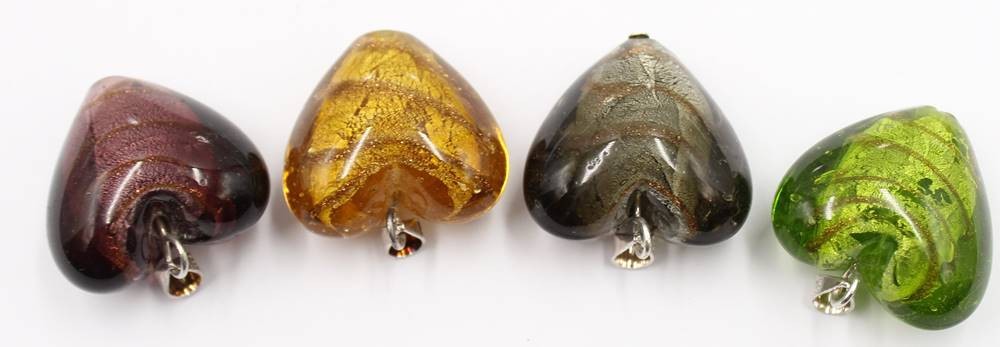4x gr. Herzanhänger mit Silbermonturen, wohl alles Murano, H-ca. 3 cm, 75 gr. [1]