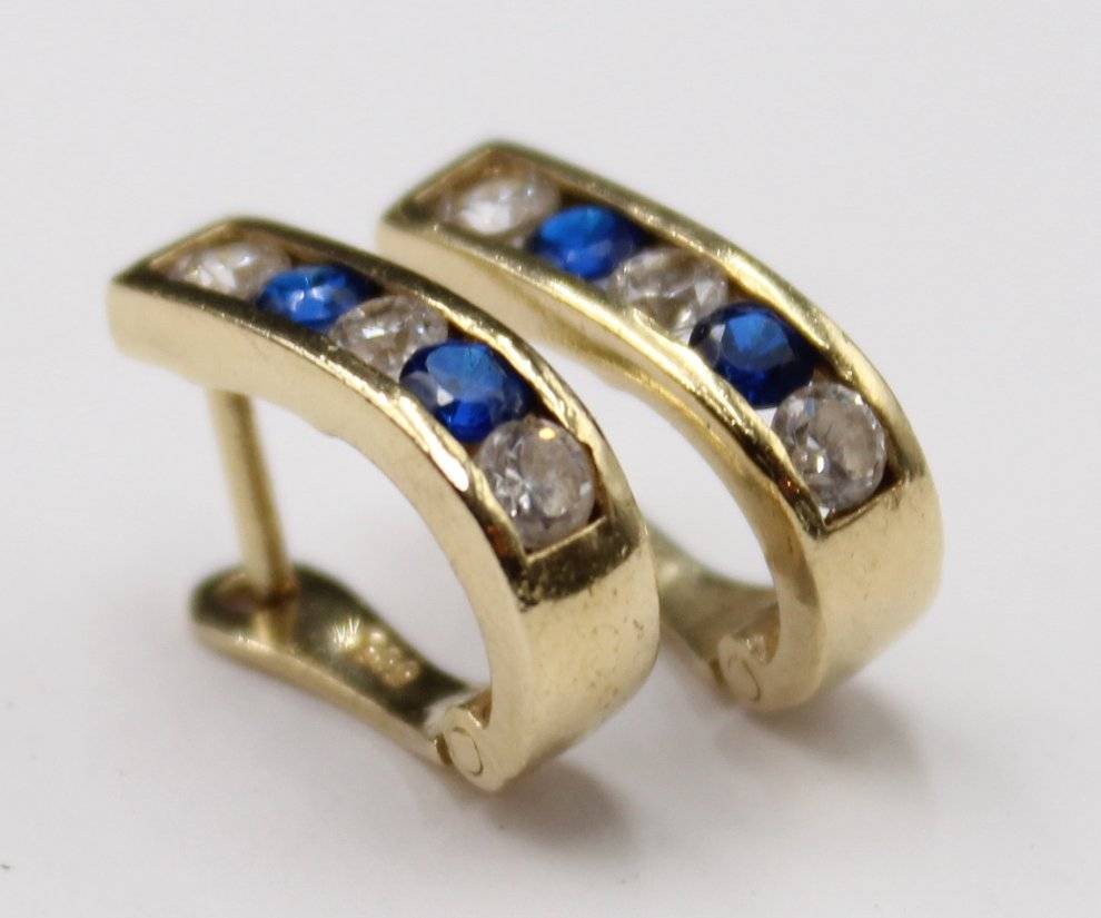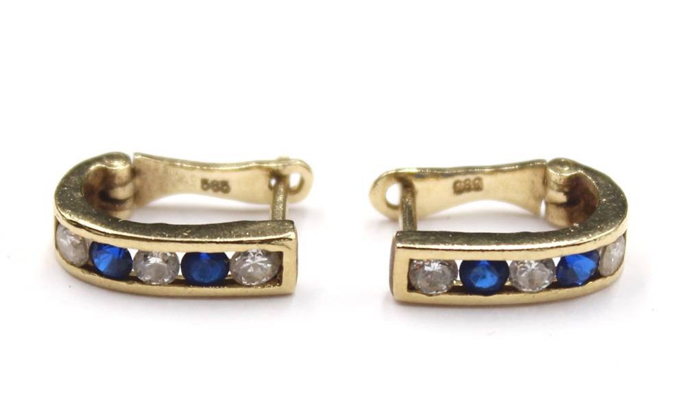 585er GG Ohrhänger, weiße u. blaue Saphire, 2,9gr., L-1,4cm [1]
