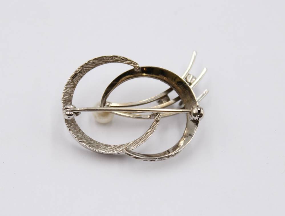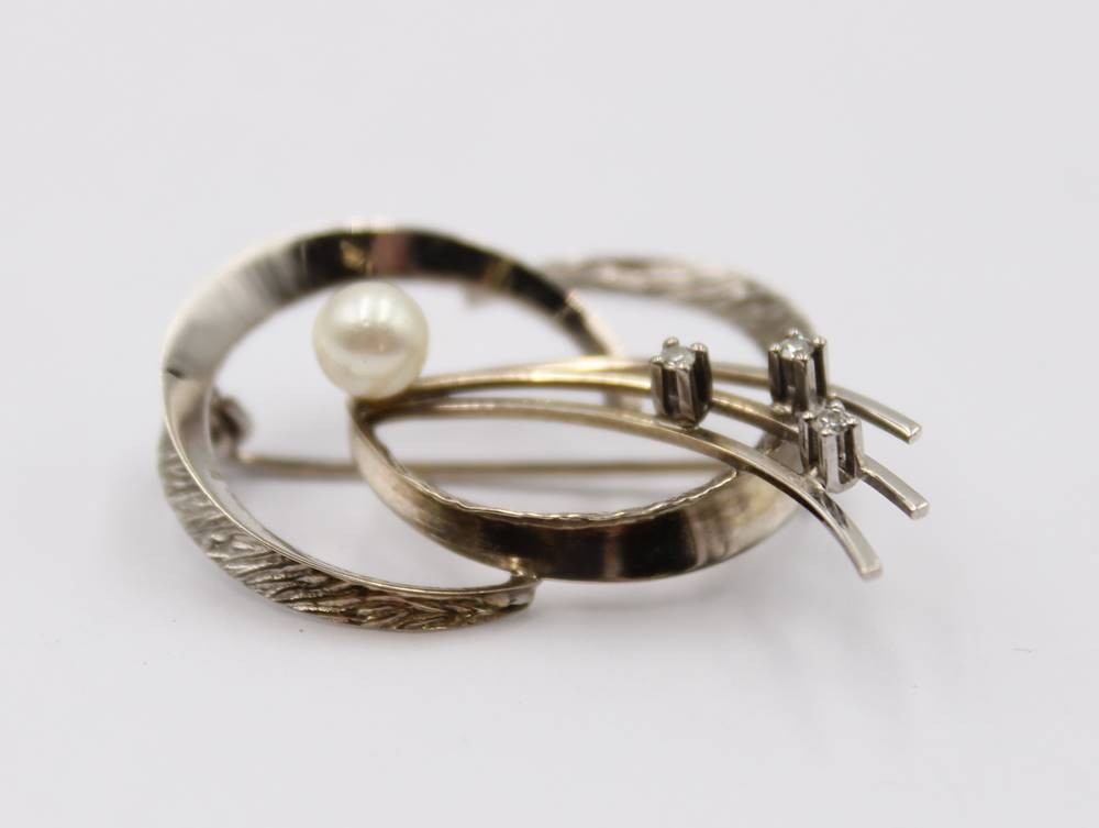 585er WG-Brosche, Perle und 3 kl. Brillanten, 4,1gr., ca. 3,4 x 3cm [1]