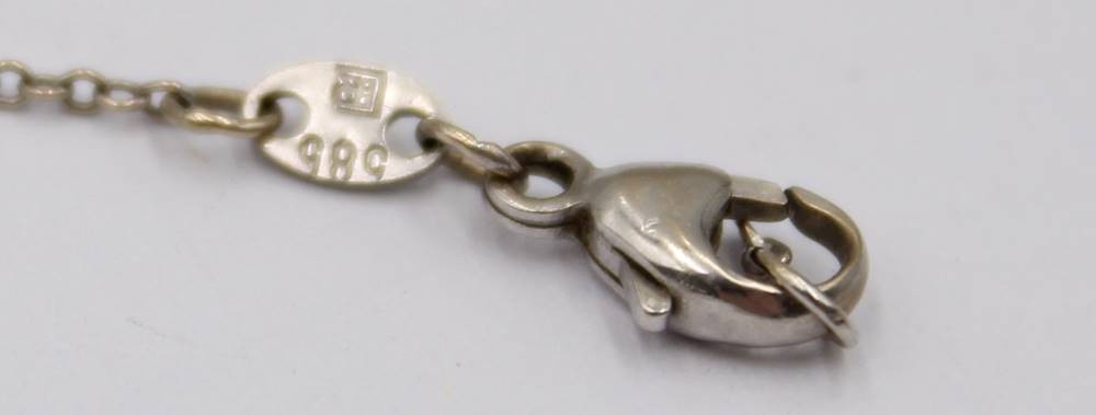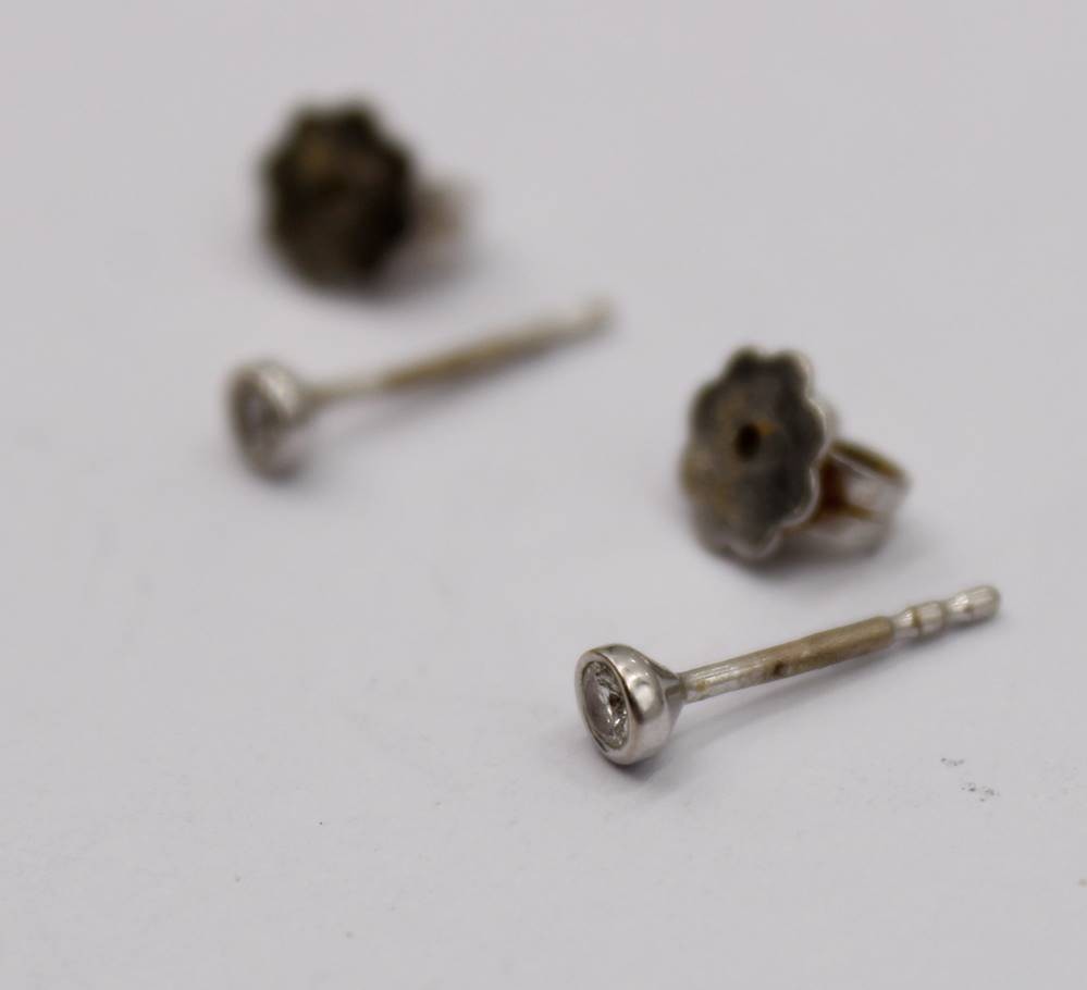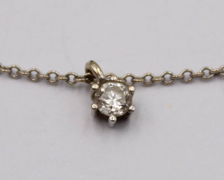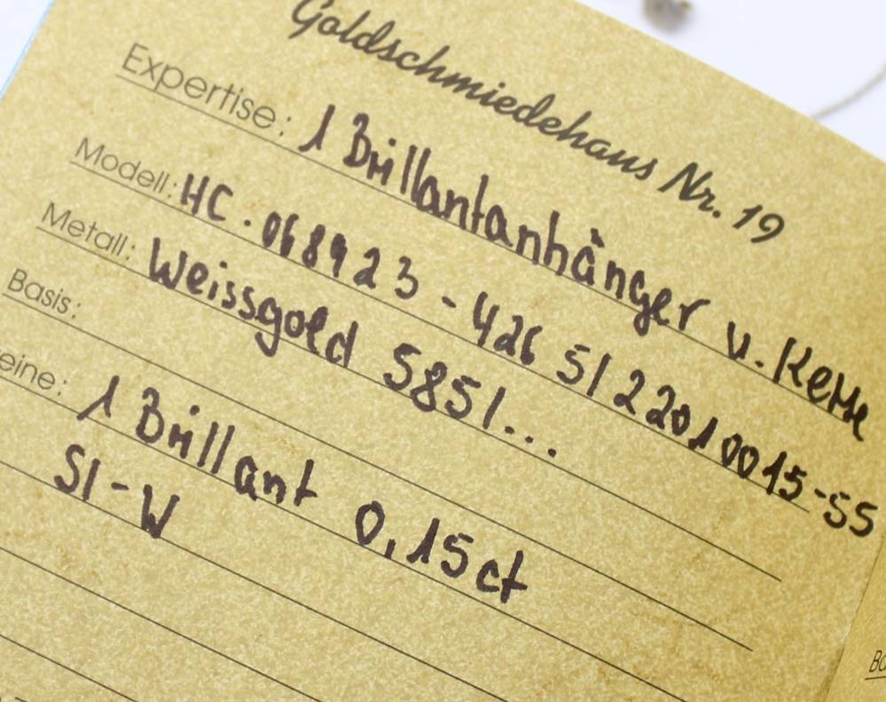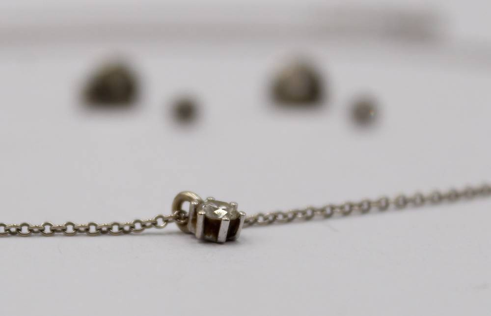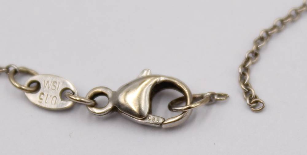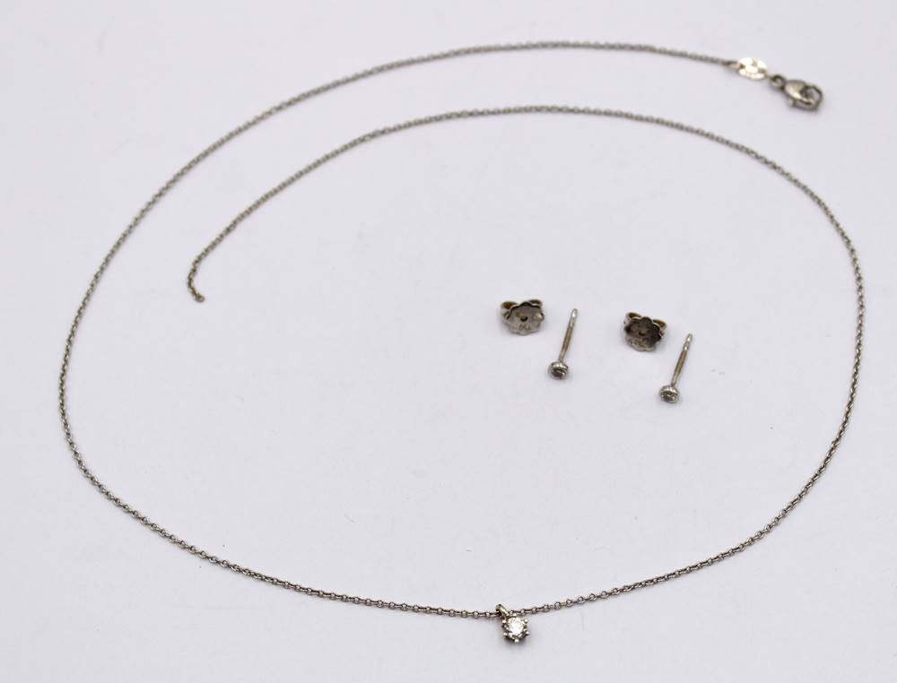 585er WG-Kette mit Brillant-Anhänger sowie Brillant Ohrstecker -750-, Kette gerissen, anbei Schmuckpass, zus. 3,5gr. [1]