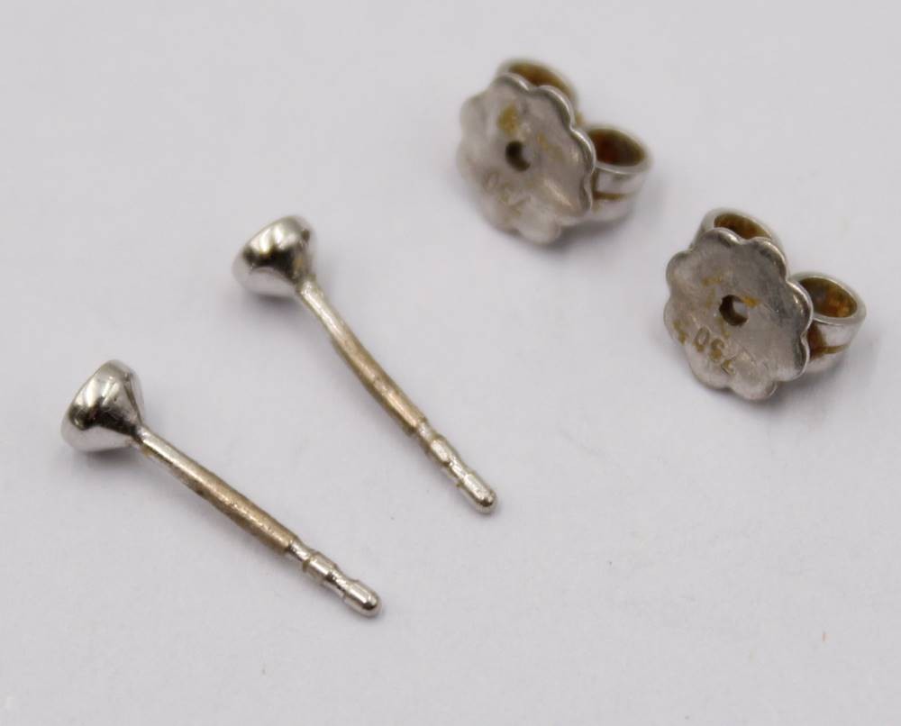 585er WG-Kette mit Brillant-Anhänger sowie Brillant Ohrstecker -750-, Kette gerissen, anbei Schmuckpass, zus. 3,5gr.